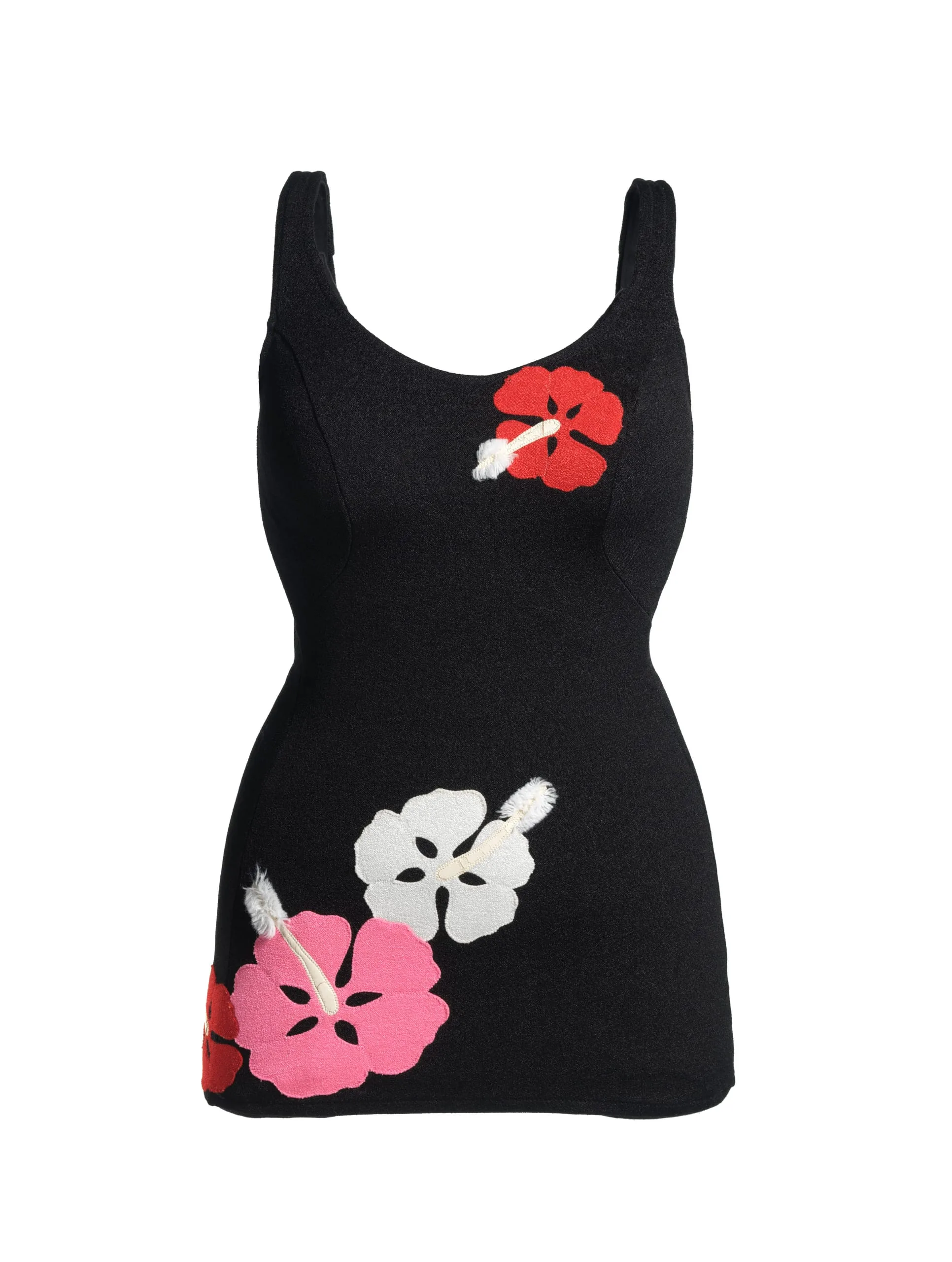 - Spandex/ cotton knit with vinyl and cotton thread appliqués