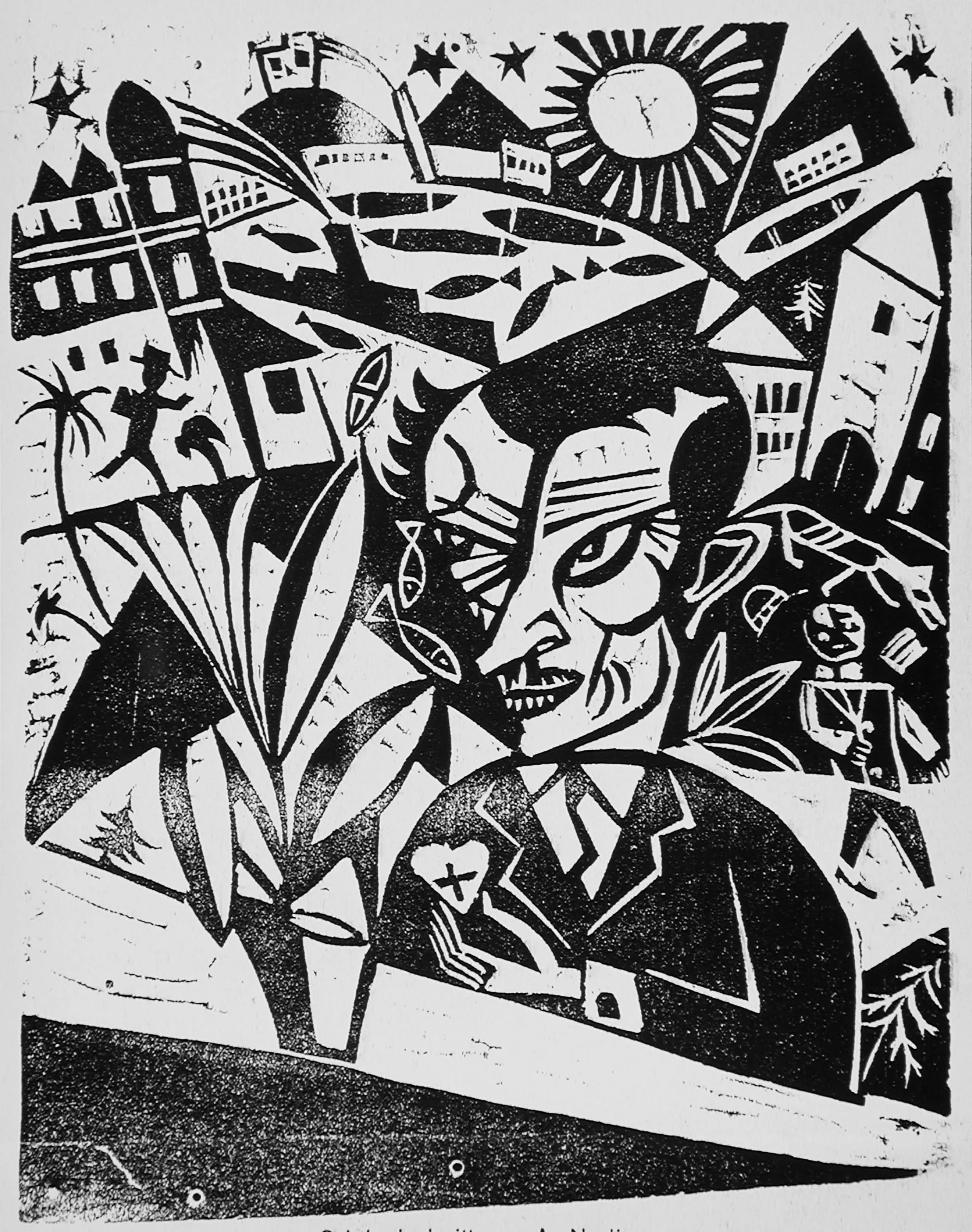 - Woodcut on thin green wove paper