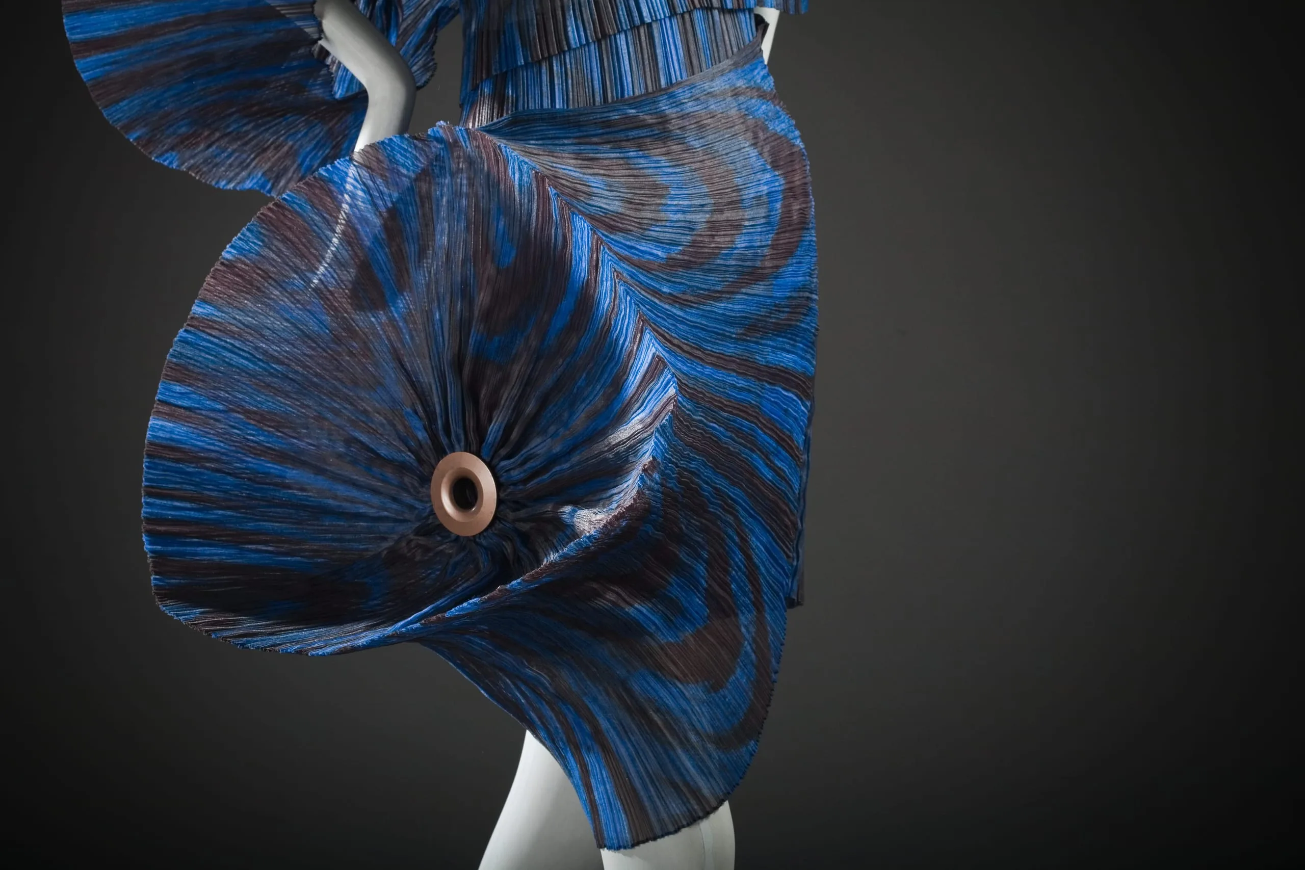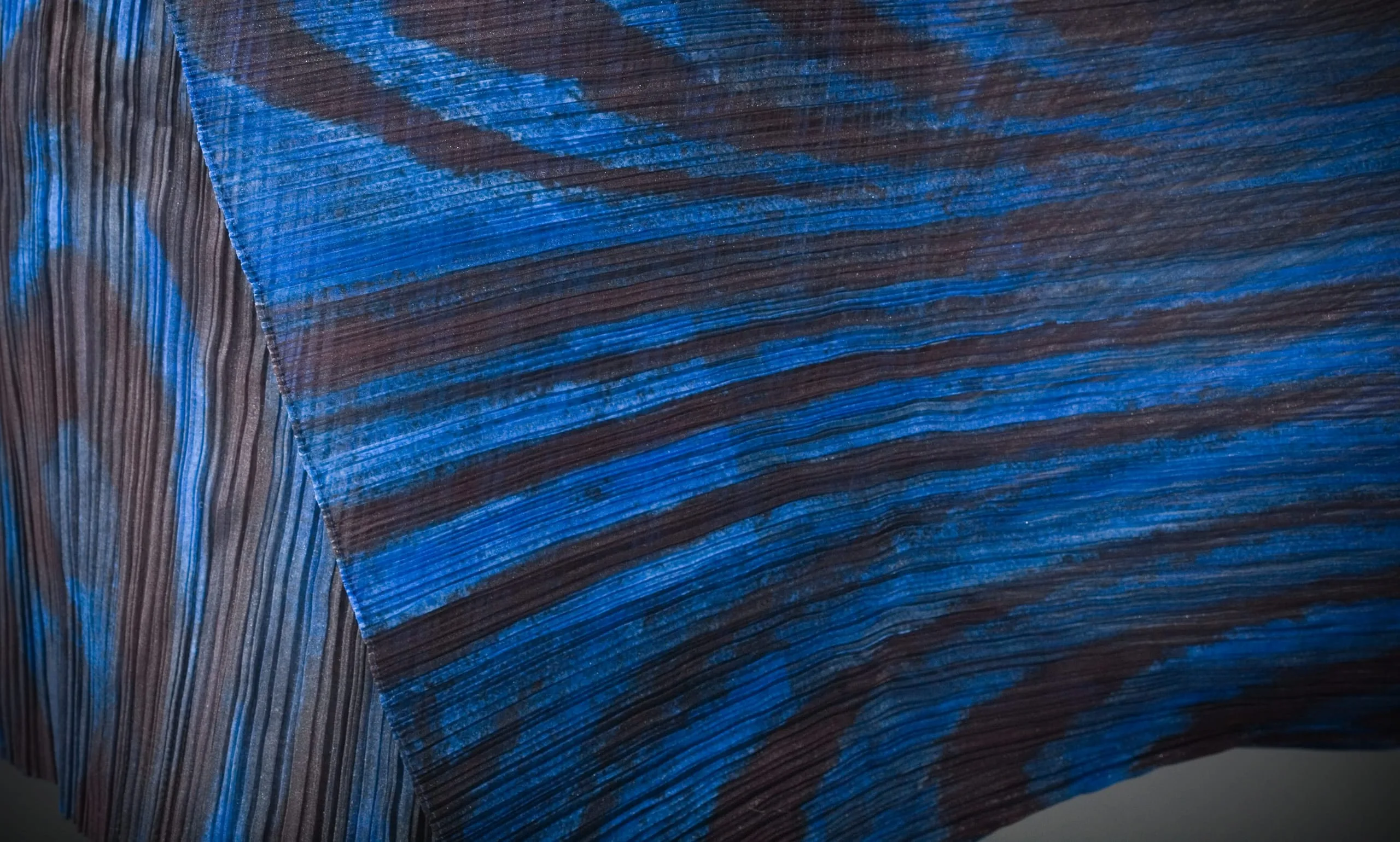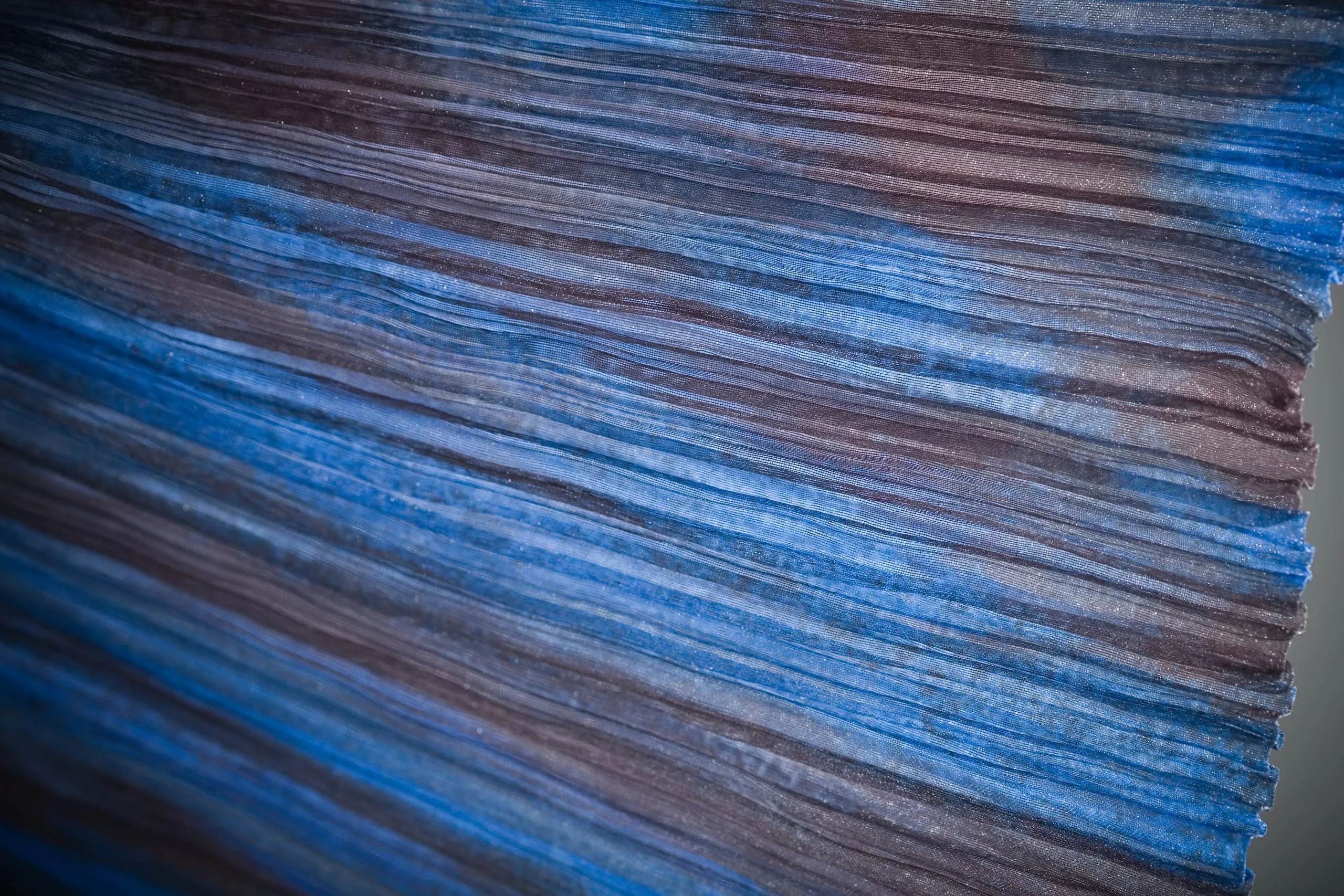 - Polyester plain weave, printed, with heat-set pleats, metal grommet