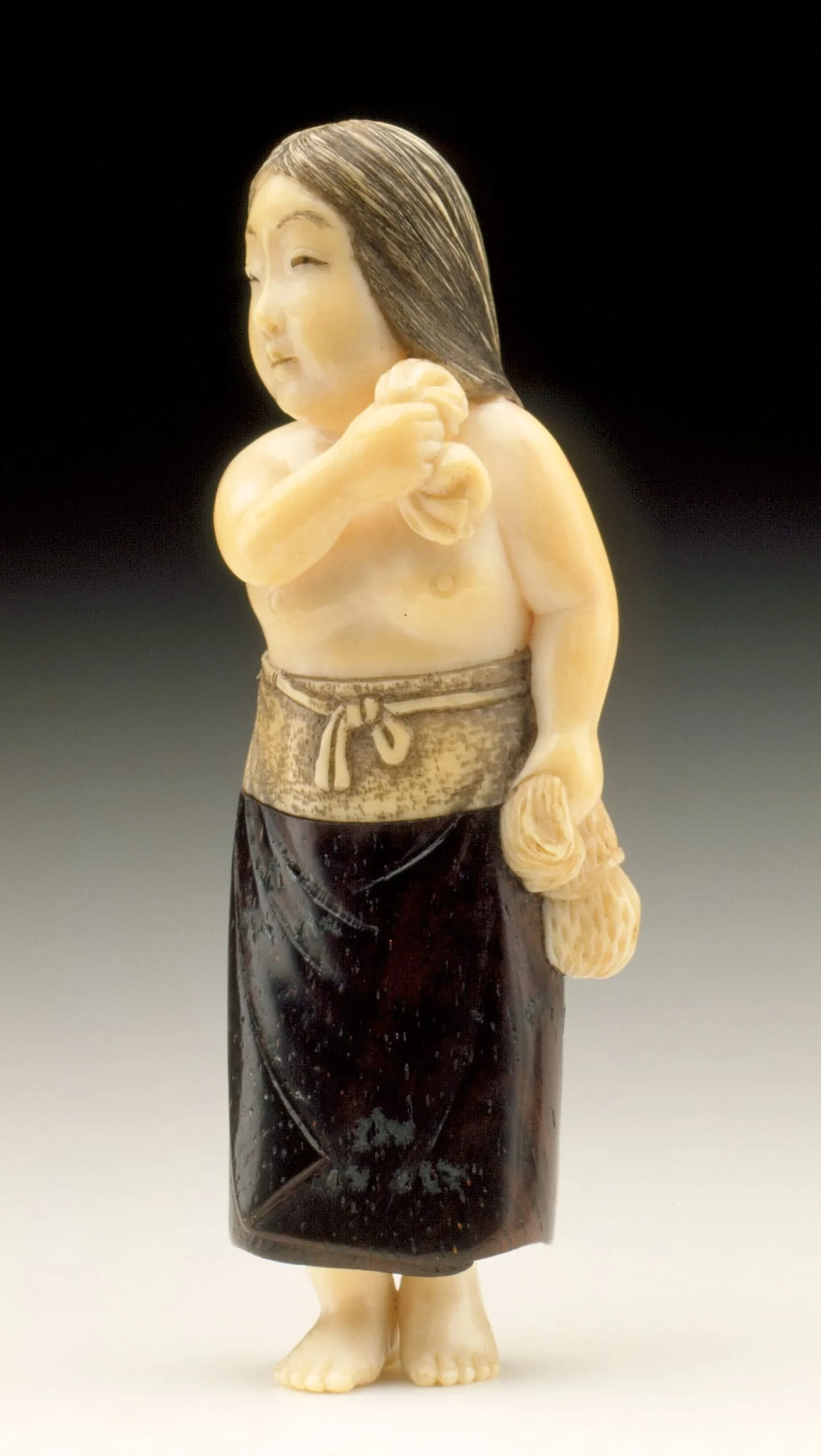 - Ivory with sumi, wood, metal inlay