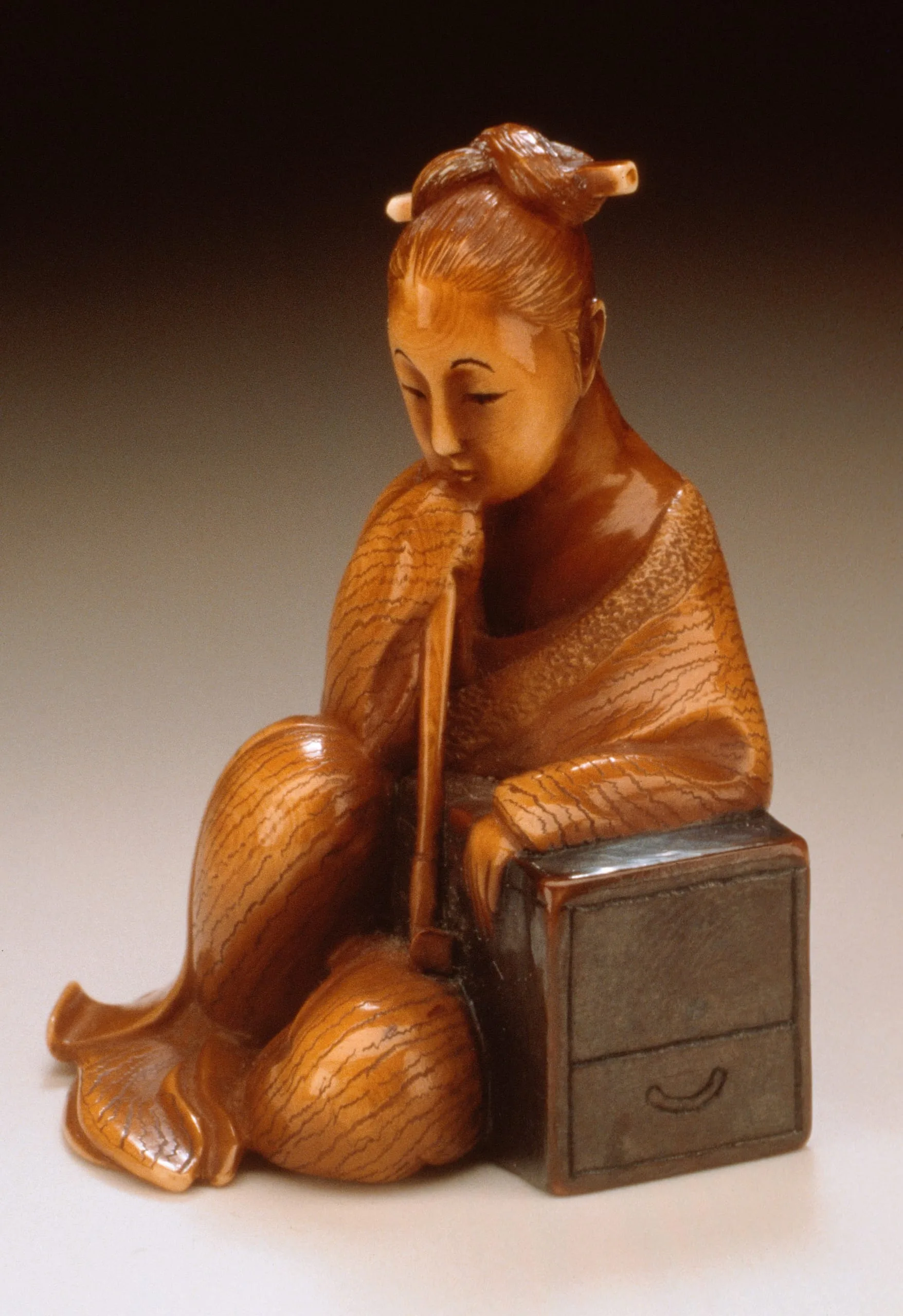 - Ivory with dark staining, sumi
