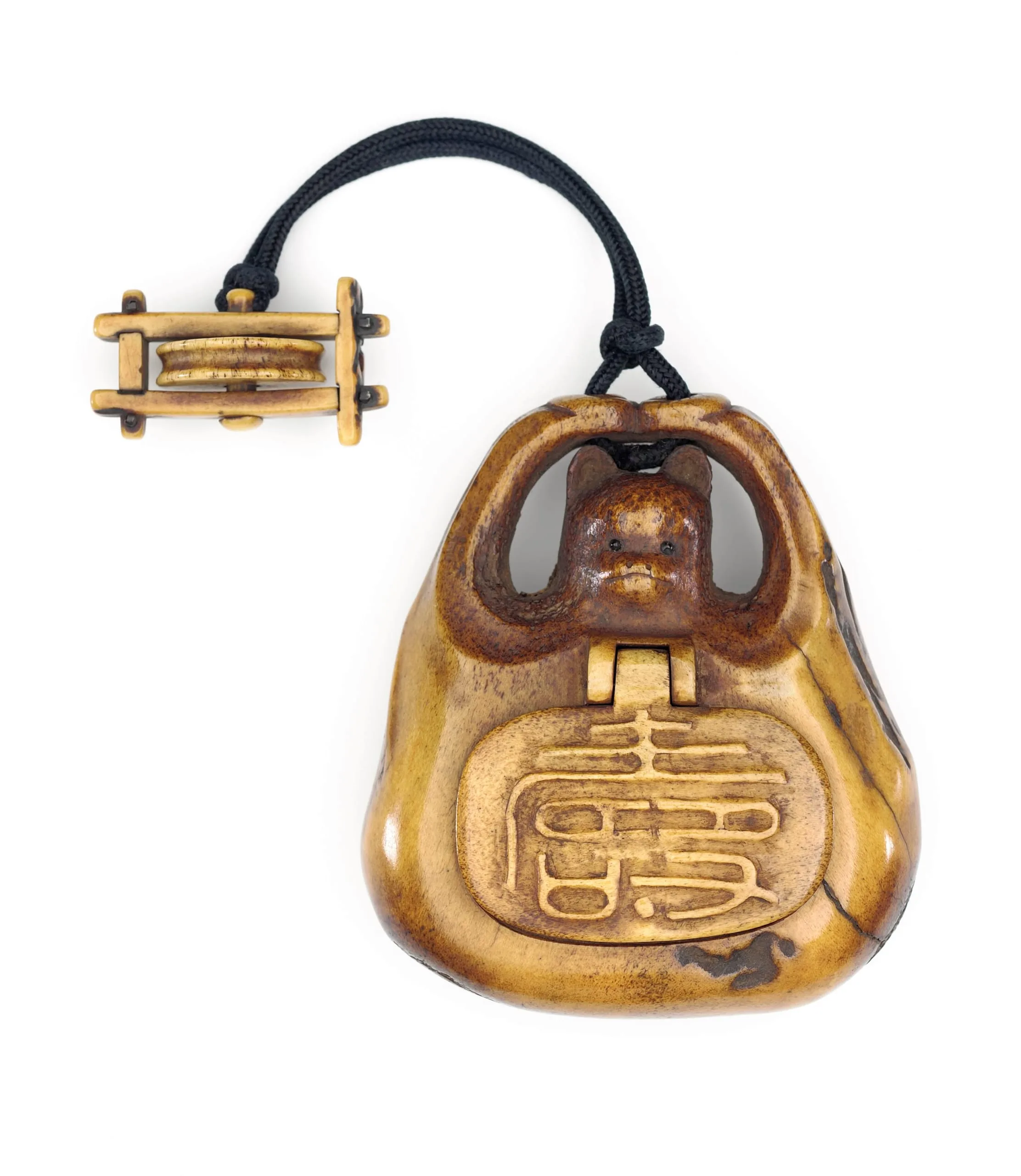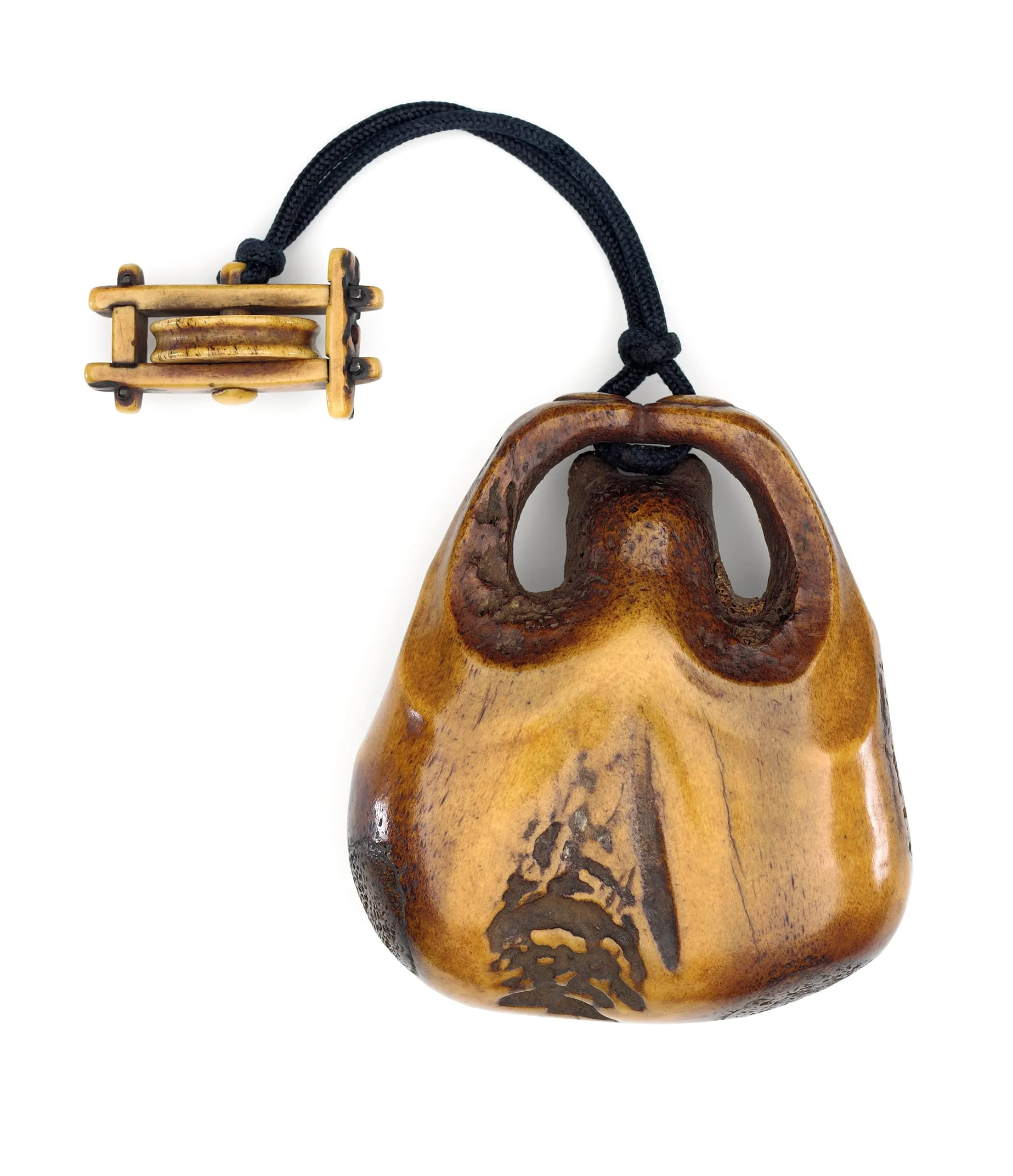 - Tonkotsu: 3 3/8 x 3 x 1 1/4 in. (8.4 x 7.6 x 3.3 cm); Netsuke: 1 5/8 x 15/16 x 15/16 in. (4.0 x 2.3 x 2.3 cm)