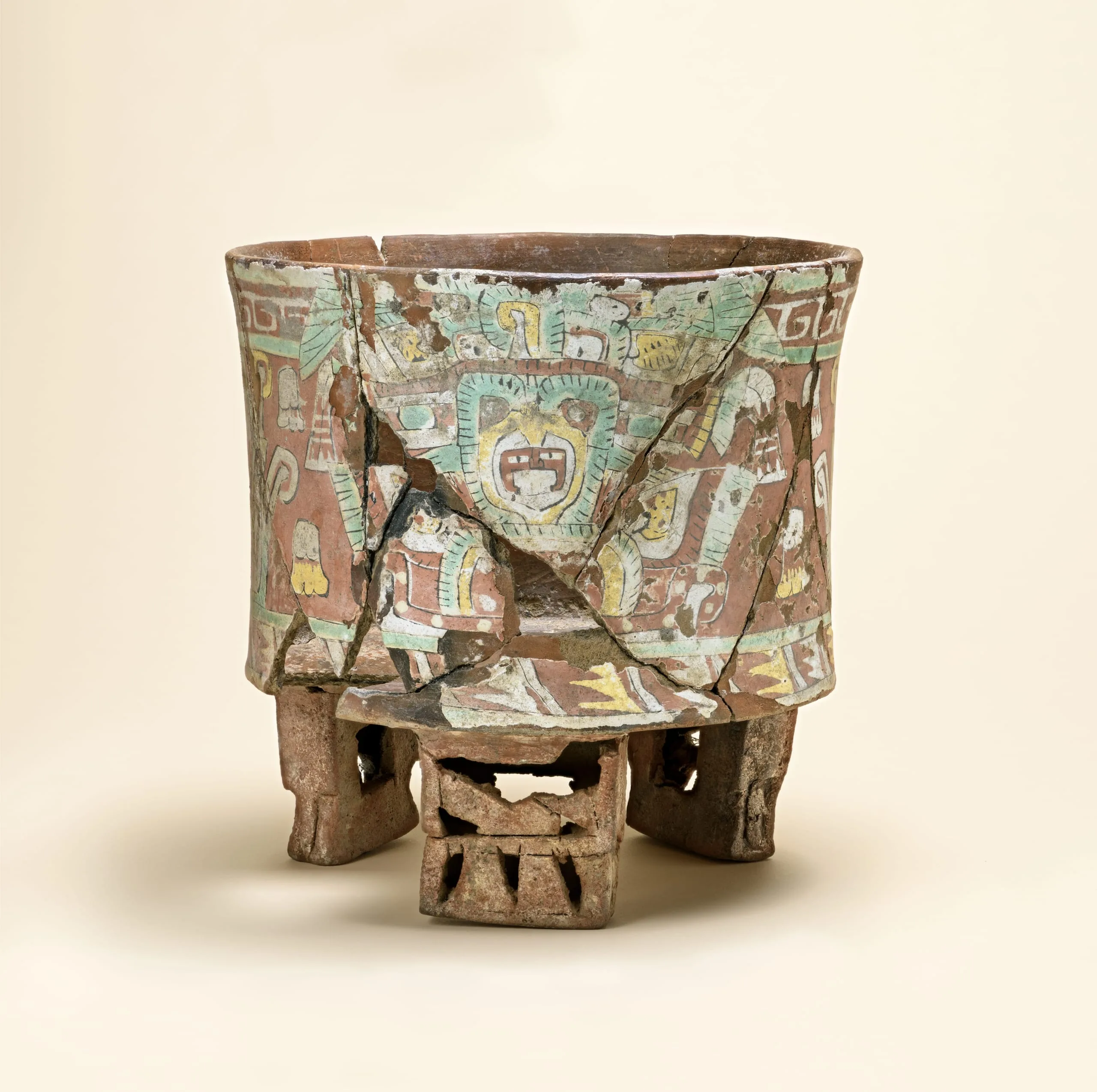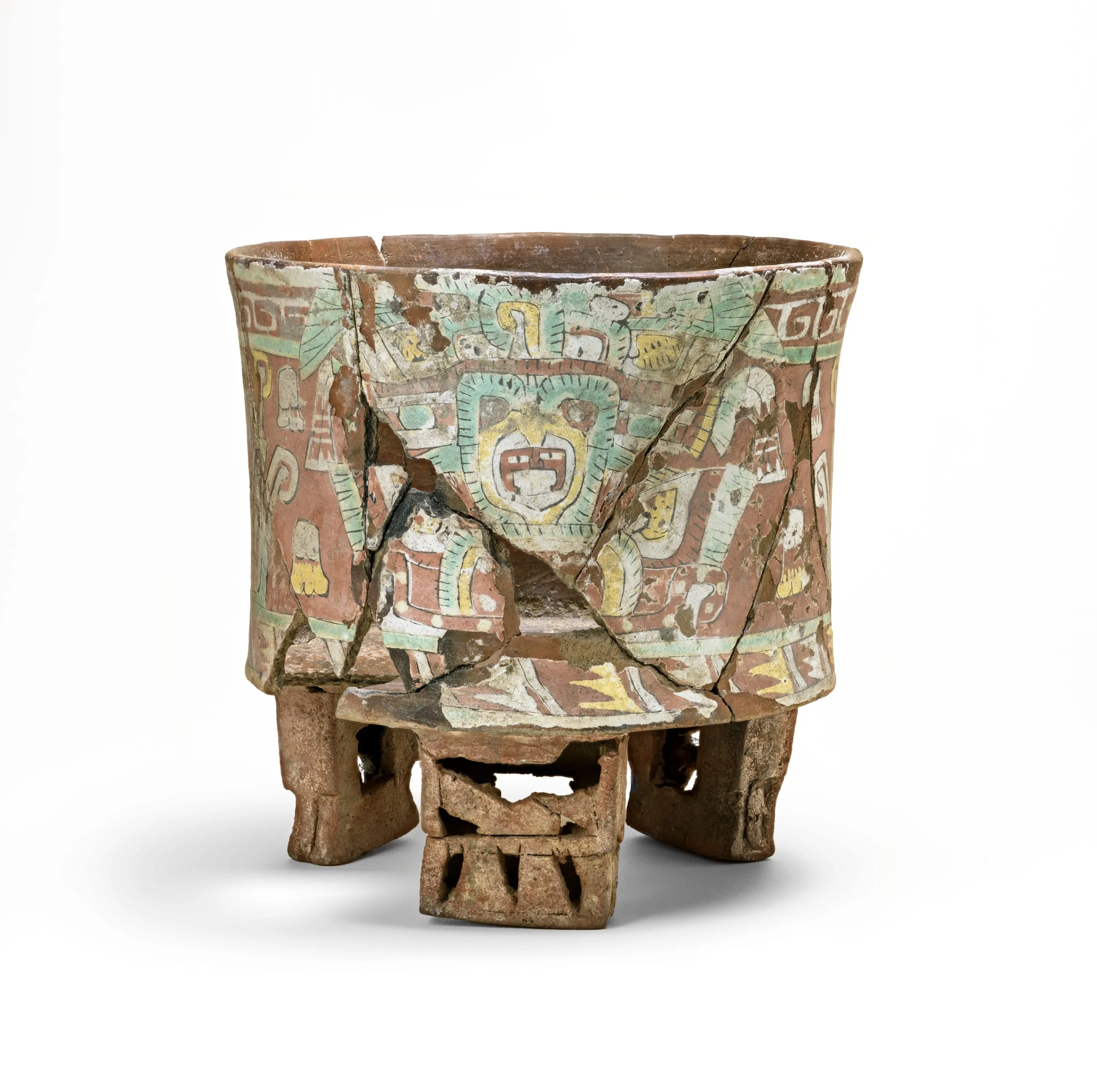 - Tripod Vessel Depicting Figure in Butterfly Headdress and Mountain Motif
