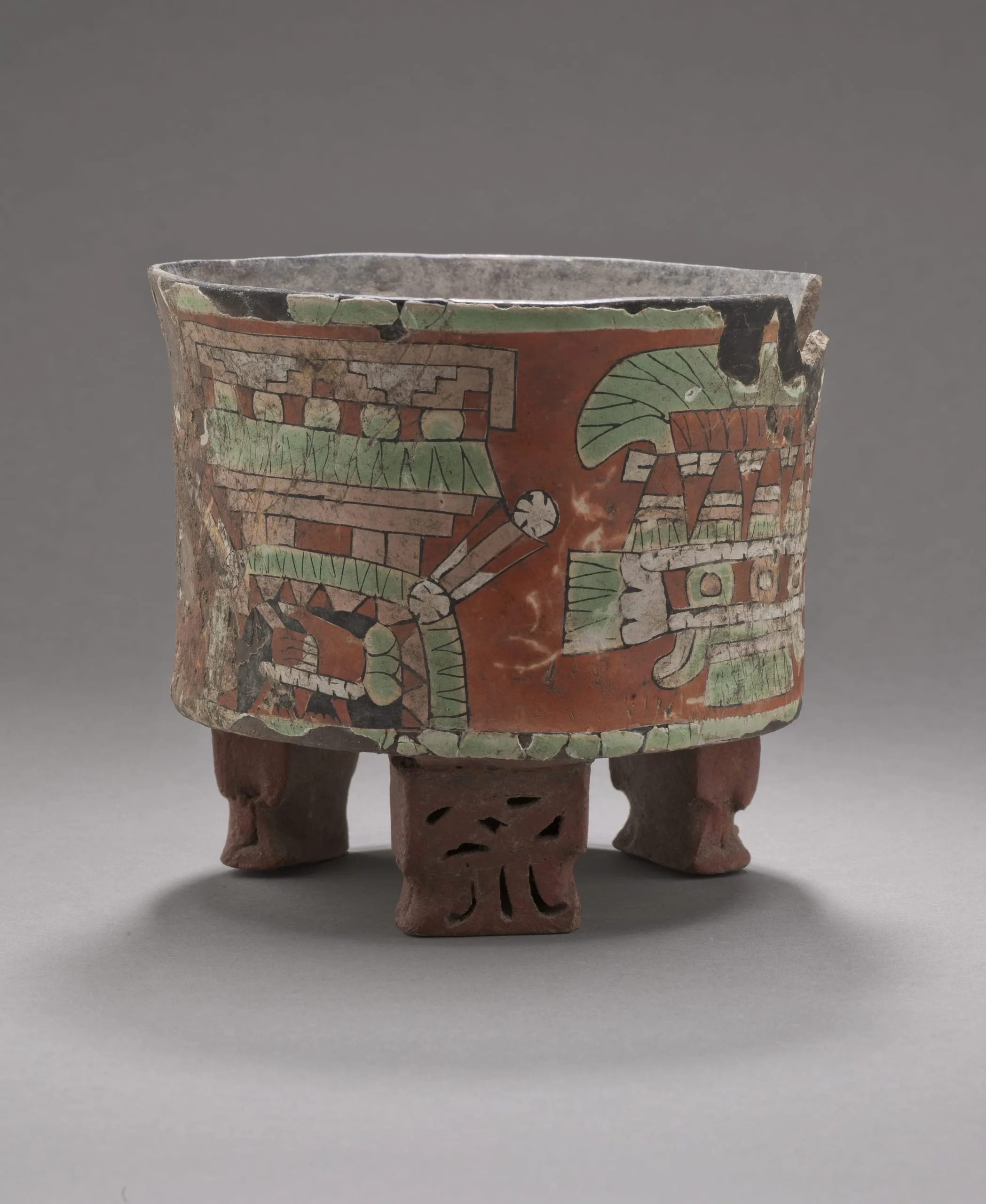 - Tripod Vessel Depicting a Temple Atop a Shield and Crossed Darts