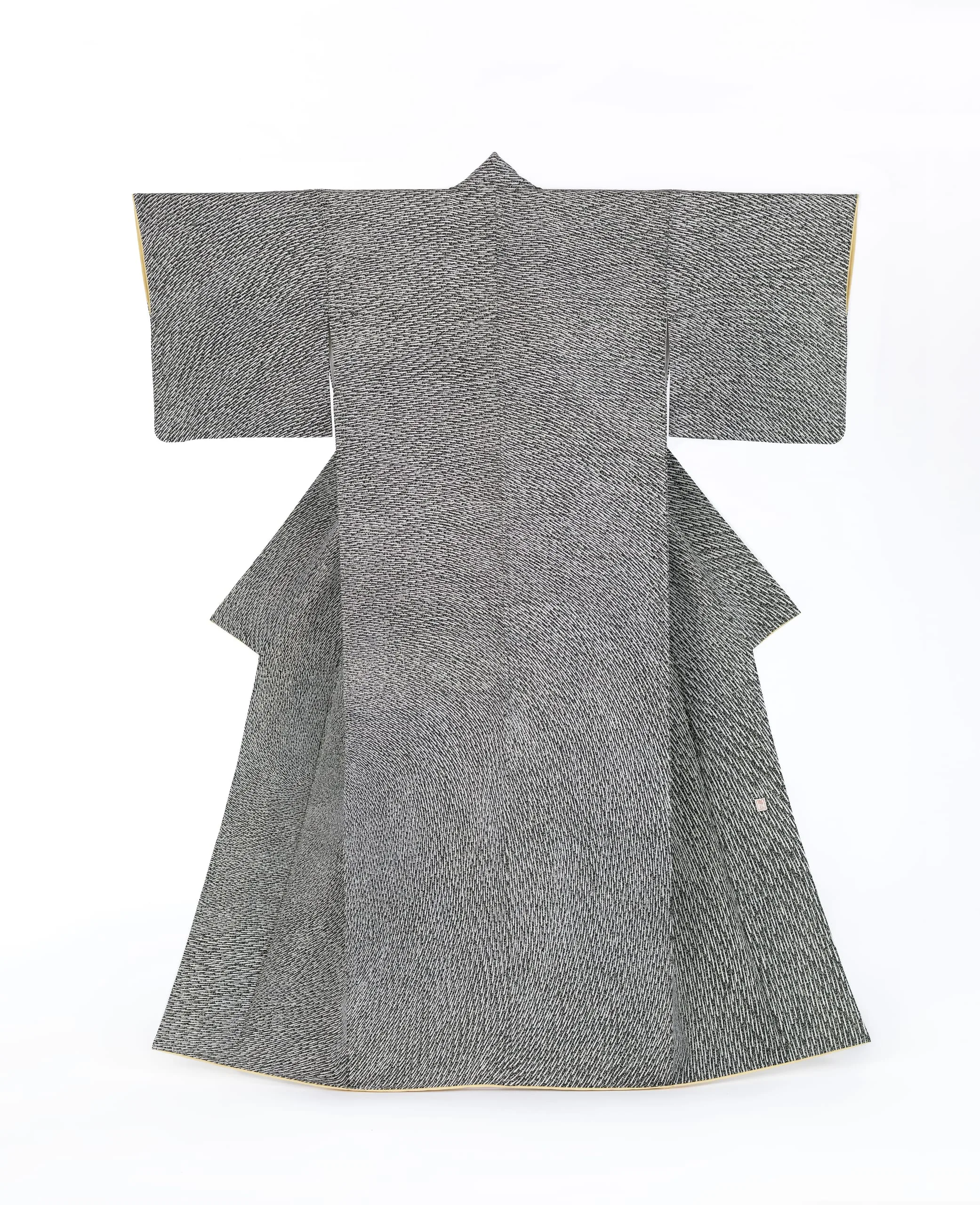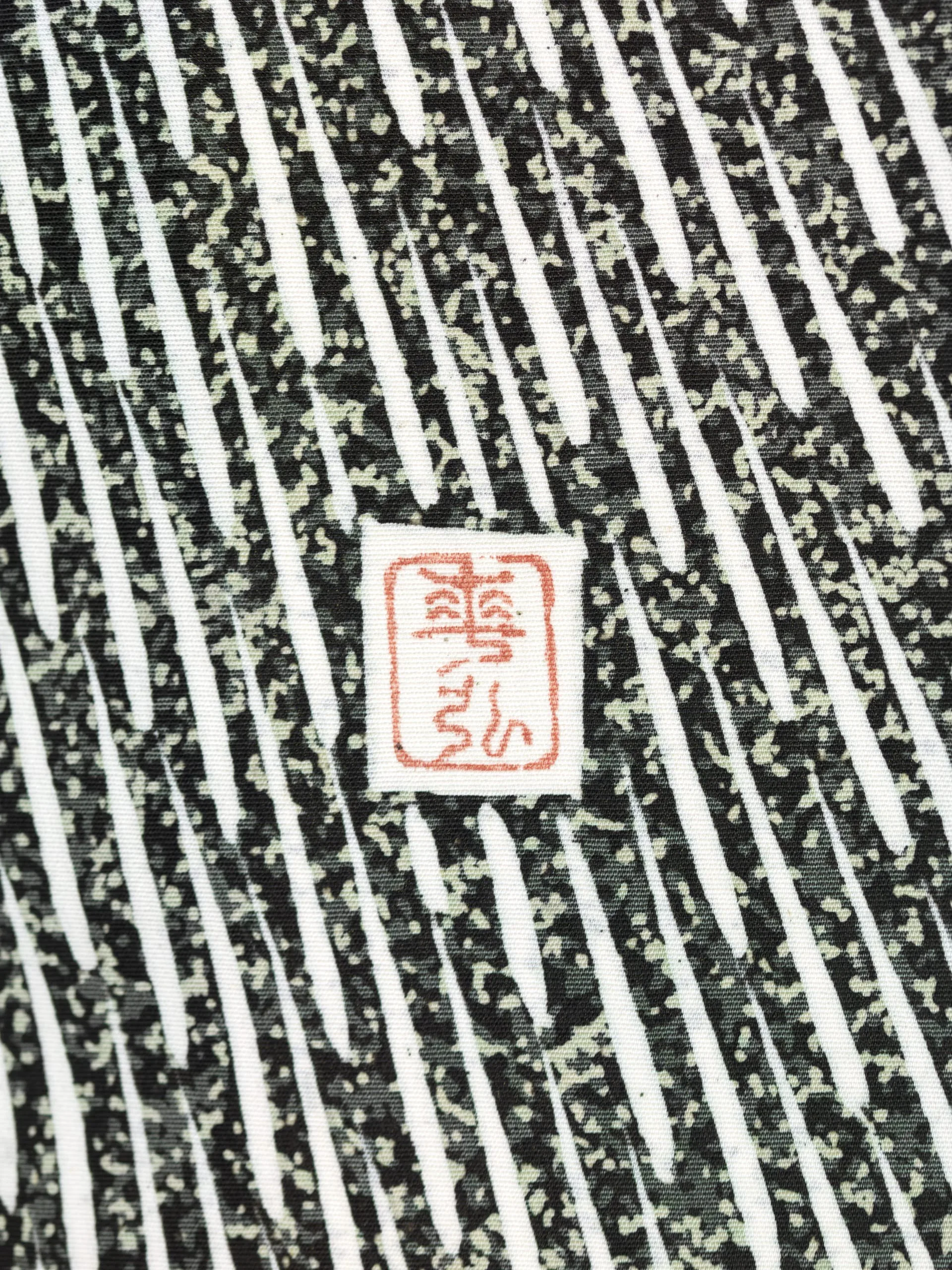 - Silk plain weave (crepe; chirimen), free hand paste-resist dyed (yūzen)