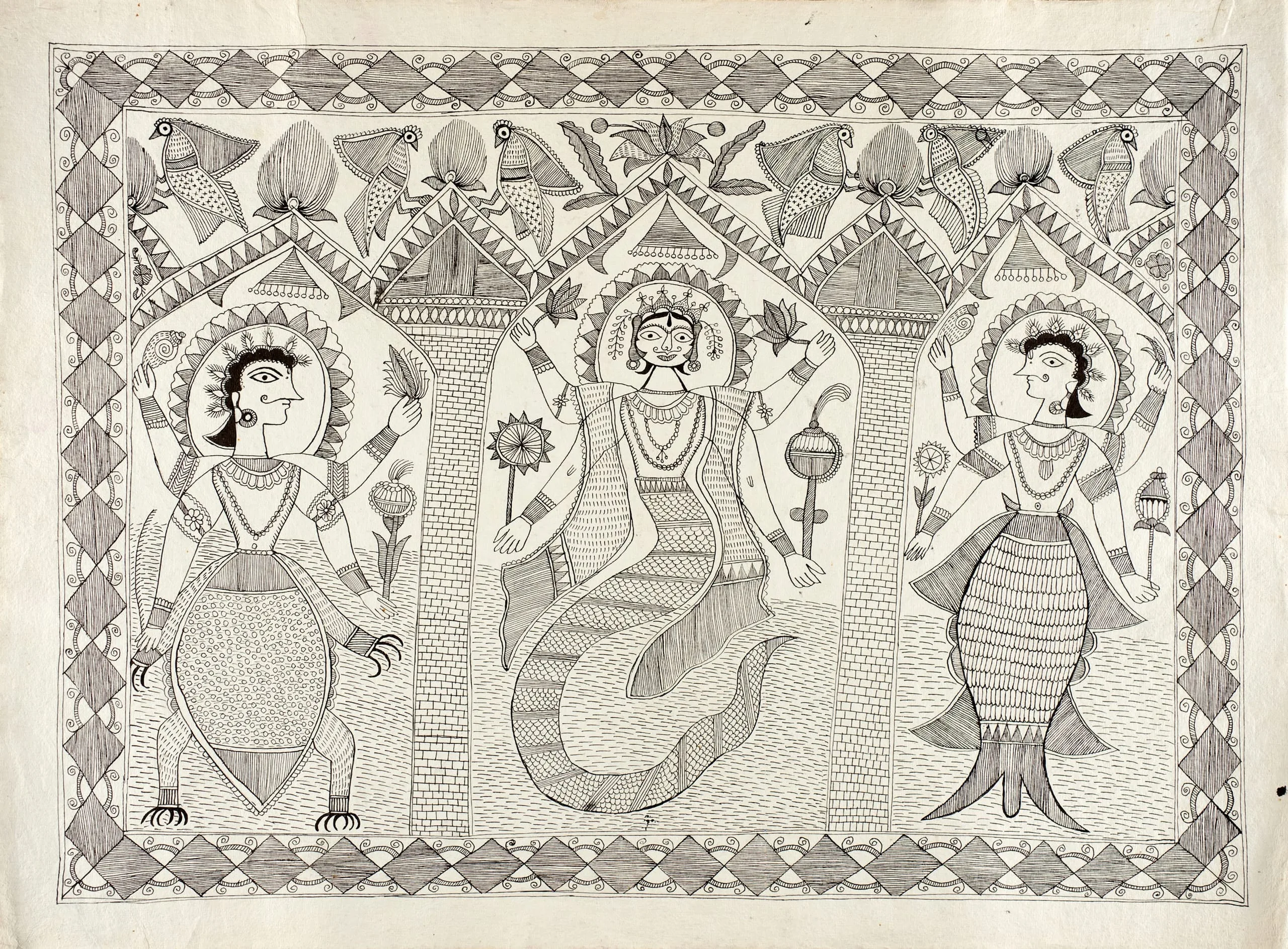 Vishnu on Ananta Flanked by His Kurma and Matsya Avatars