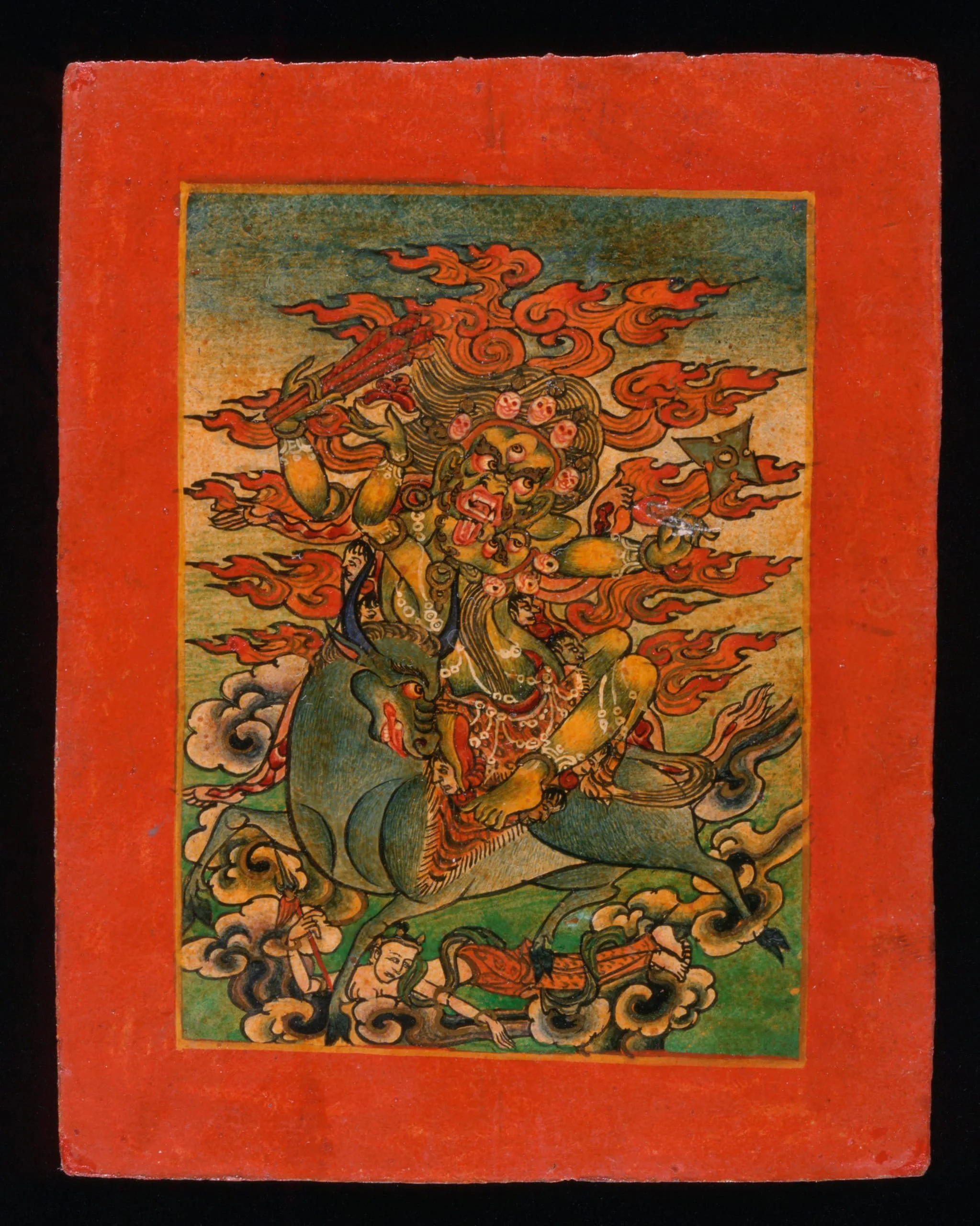 - Yellow Yama (?) and Consort on Bull, Nyingmapa Buddhist or Bon Ritual Card