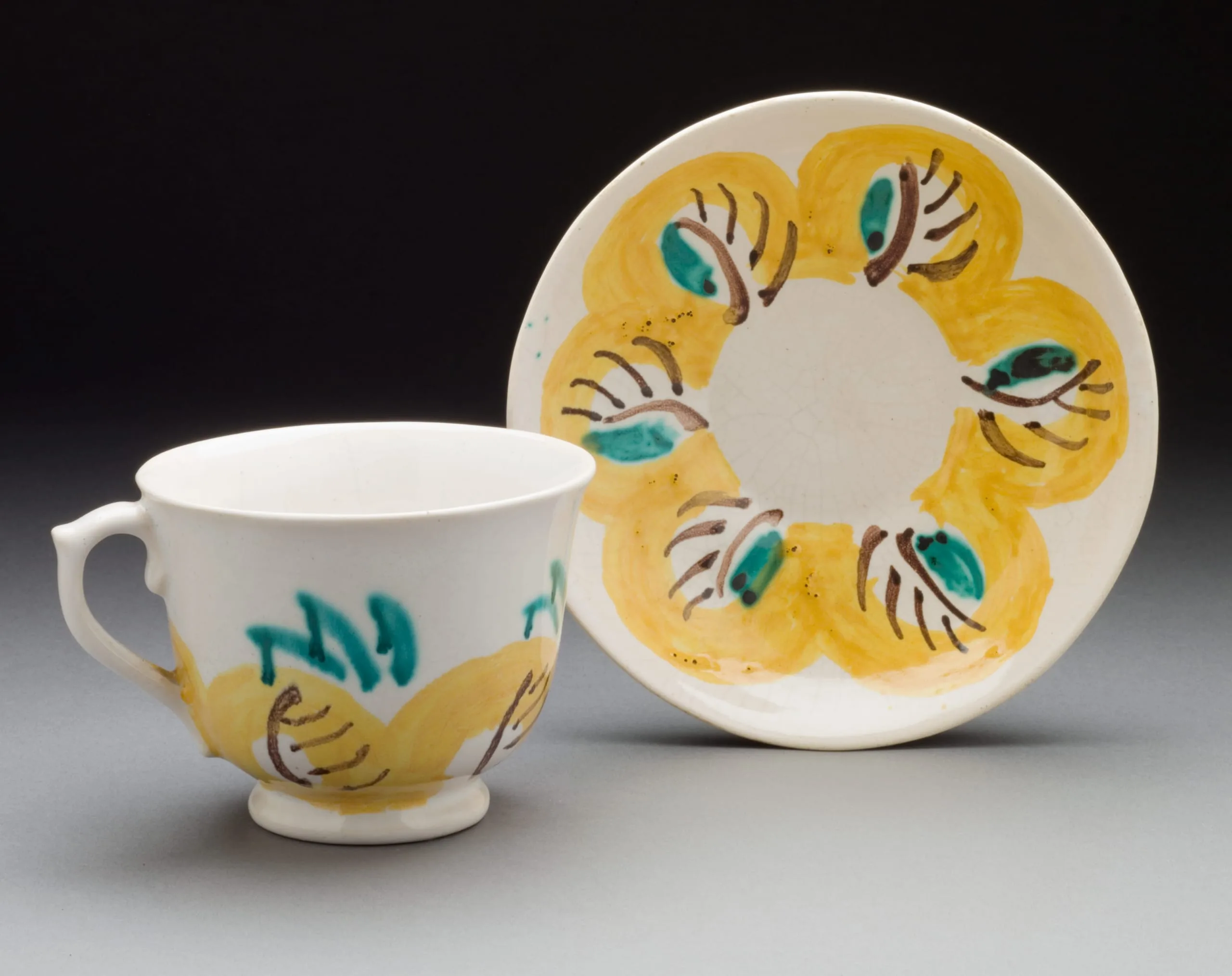 - Teacup and Saucer with Abstract Leaf Motif