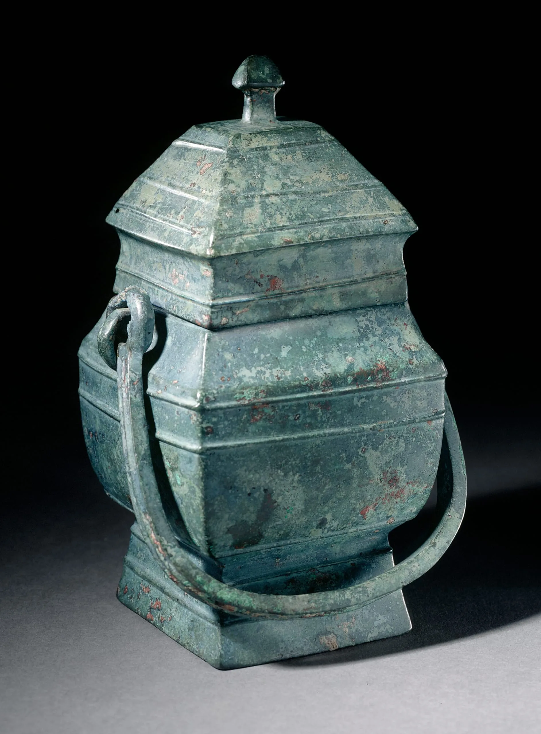 - Lidded Square Ritual Wine Bucket (Fangyou) with Horizontal Ribs