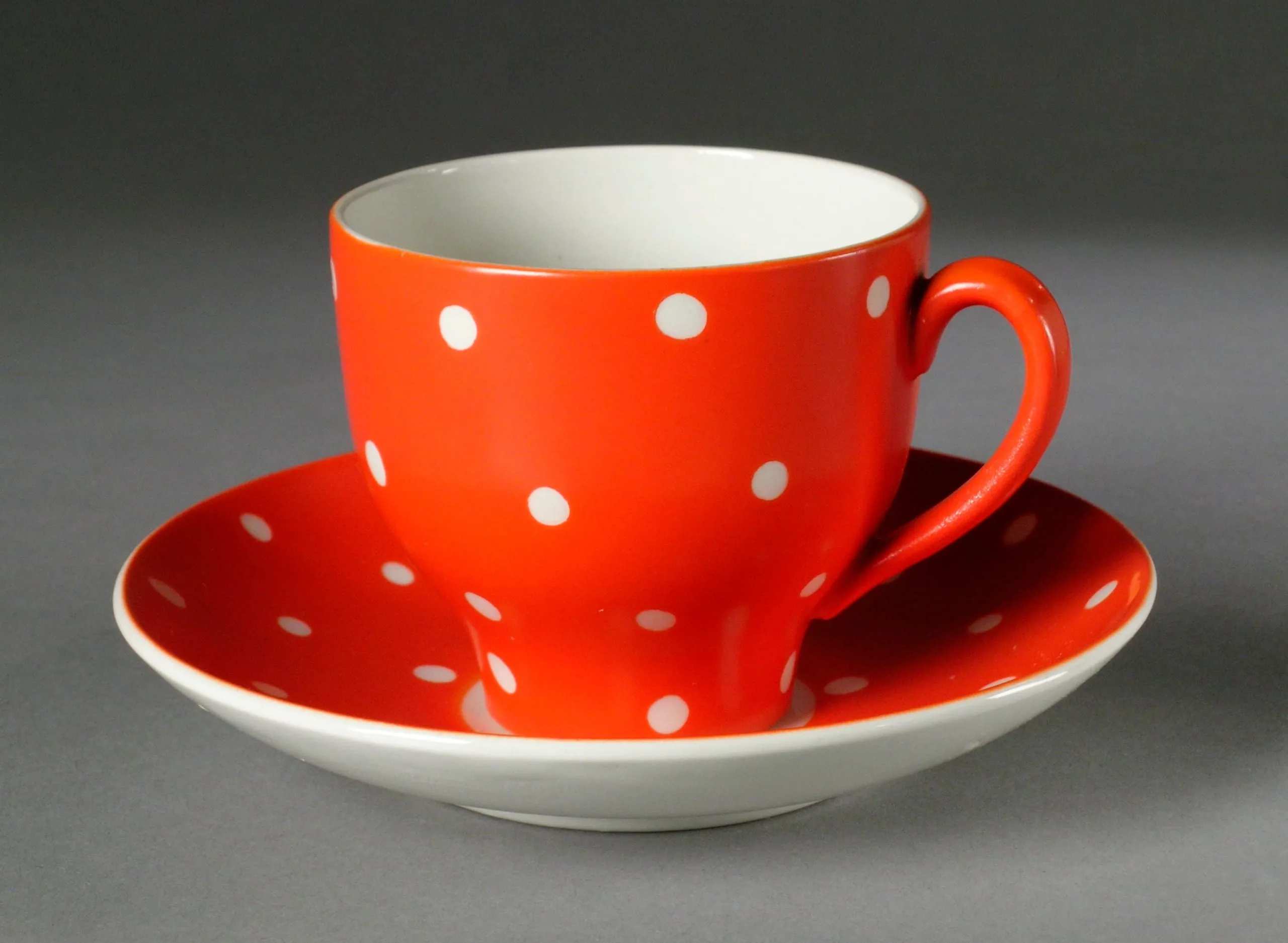 - Cup height: 2 1/2 in. (6.25 cm), Diameter: 2 7/8 in. (7.3 cm); Saucer diameter: 5 in. (12.7 cm)