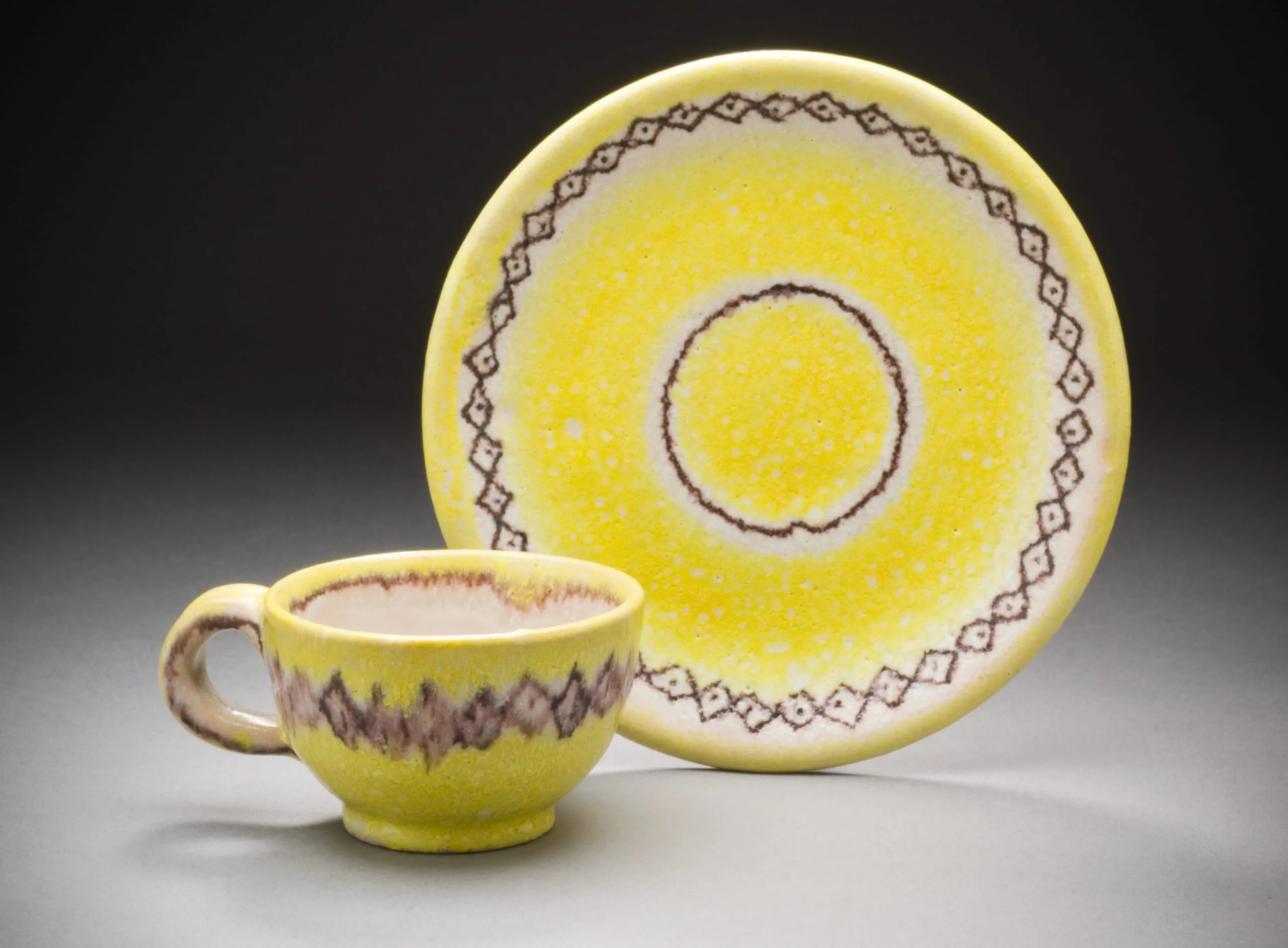 - Cup height: 1 3/4 in. (4.45 cm), Diameter: 2 3/4 in. (6.99 cm); Saucer diameter: 5 1/2 in. (13.97 cm)