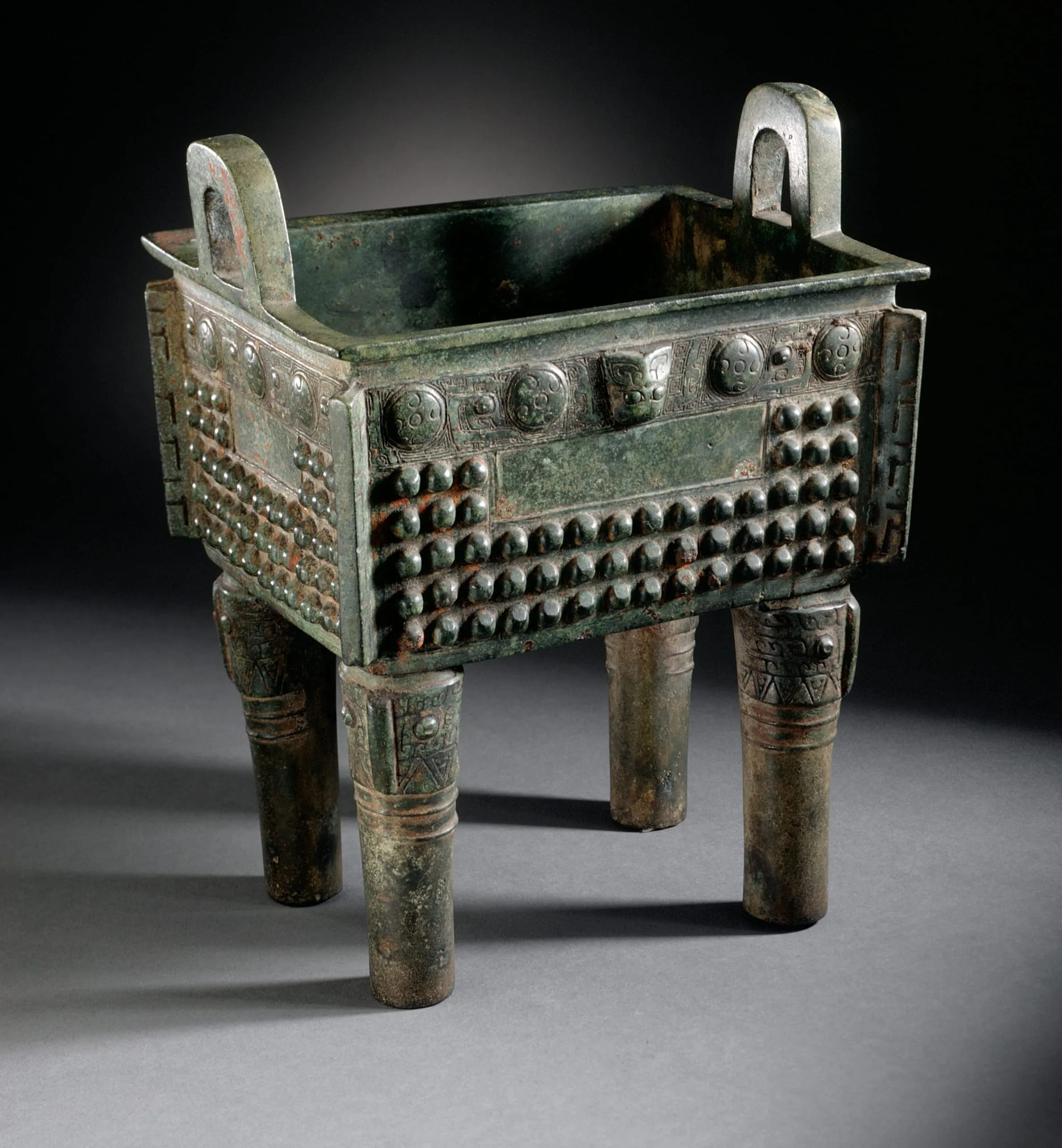 - Square Ritual Food Cauldron (Fangding) with Dragons, Whorls, and Knobs