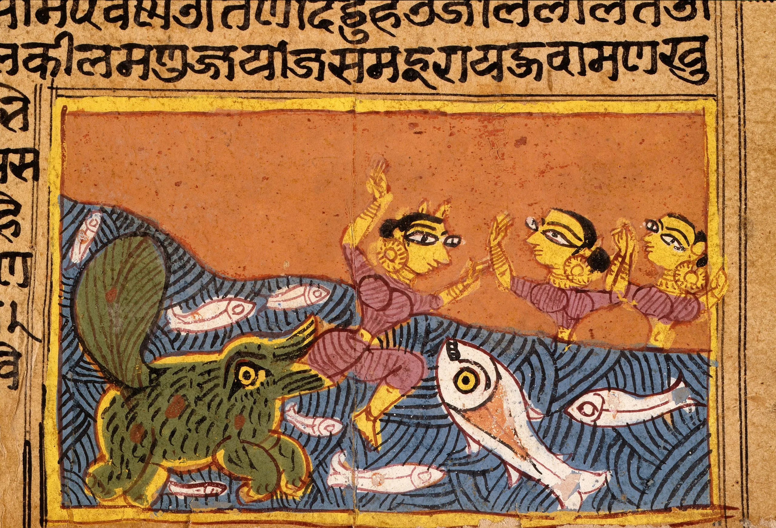 - A Dolphin (Shishumara) Attacks a Woman, Folio from a Yashodhara Charita (Life of Yashodhara)