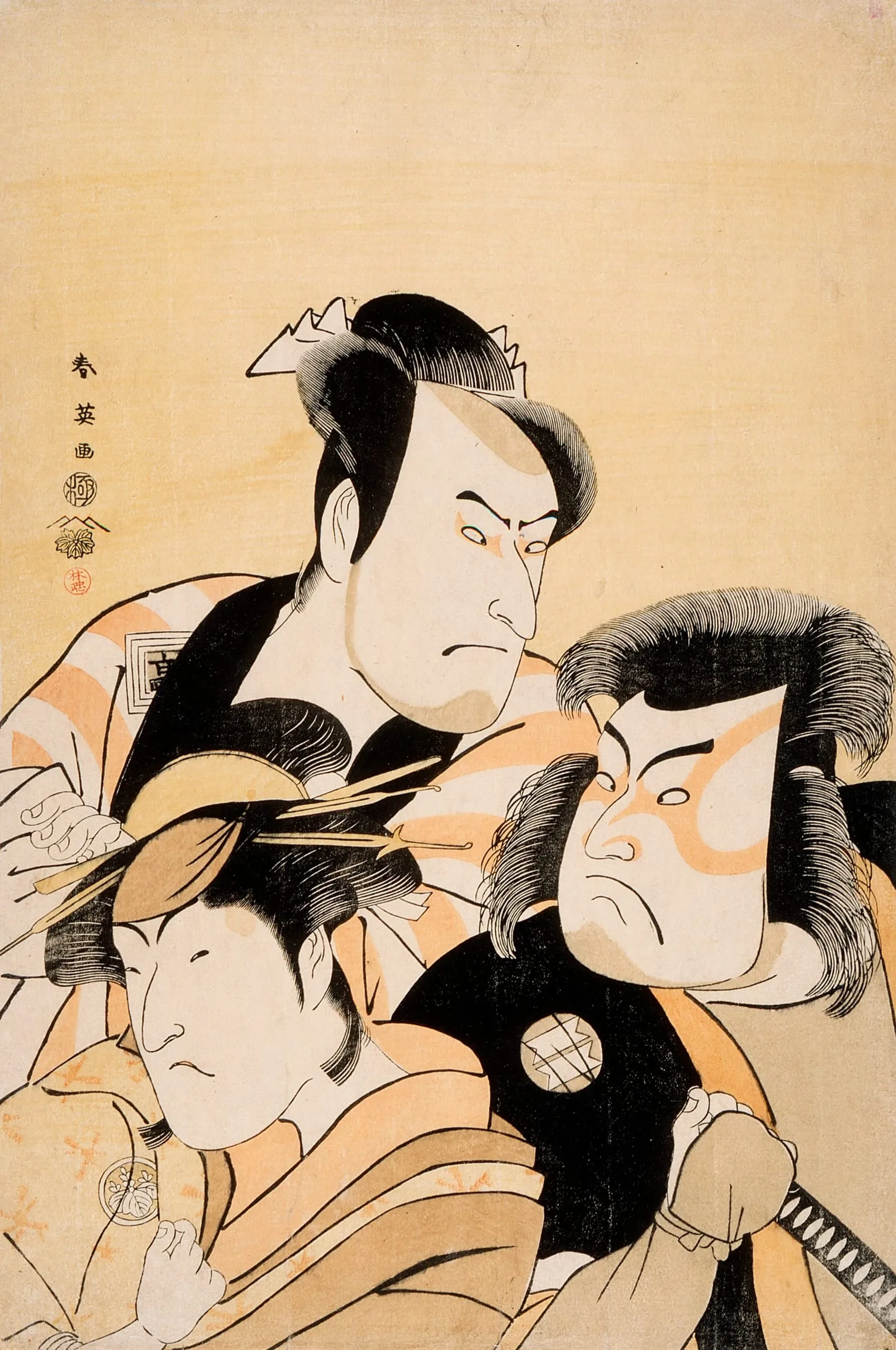 - Bust Portrait of Three Actors Ichikawa Kōmazō III, Sakata Hangorō III, Nakayama Tomisaburō I