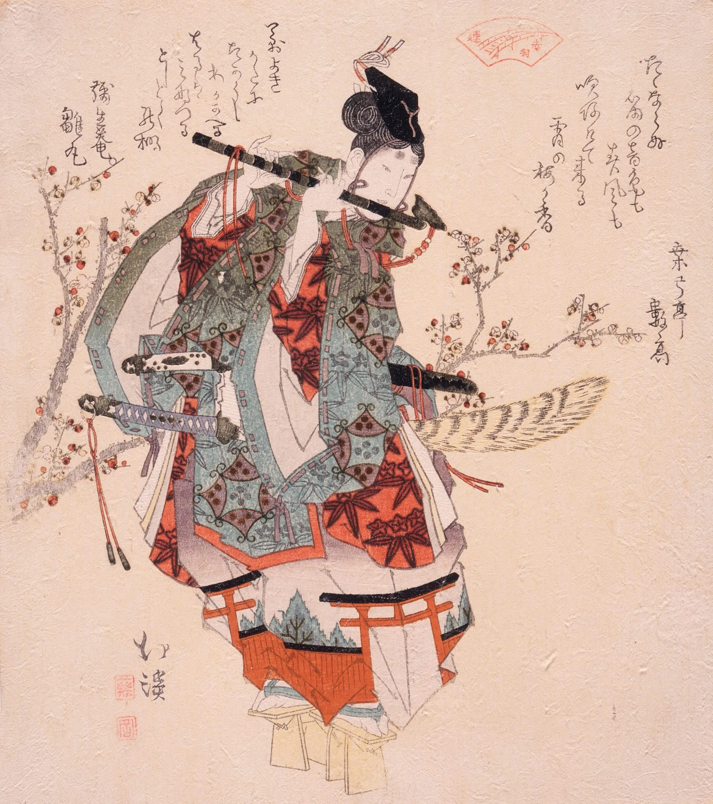 - Ushiwaka Playing a Flute