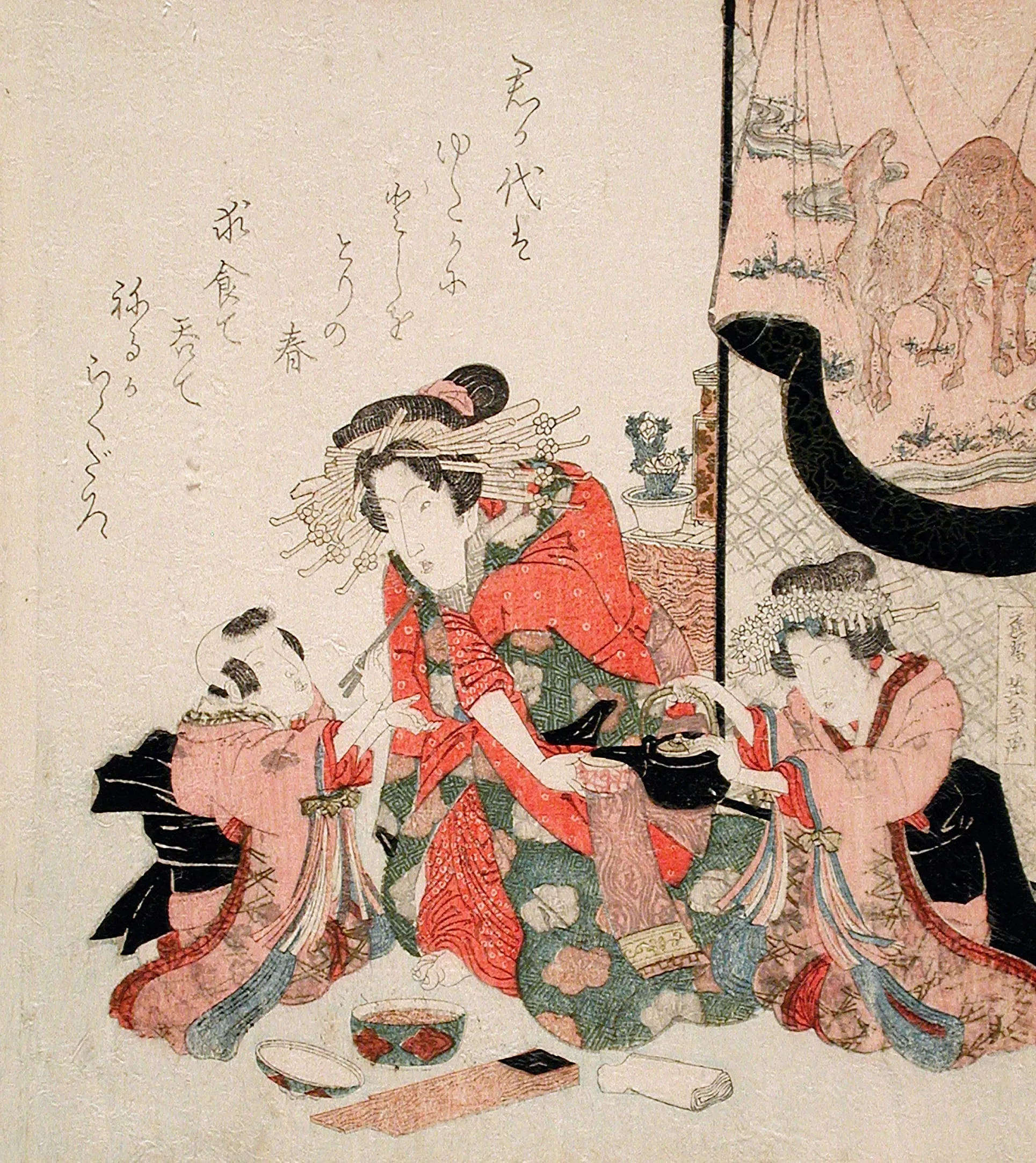 - Surimono; color woodblock print with brass