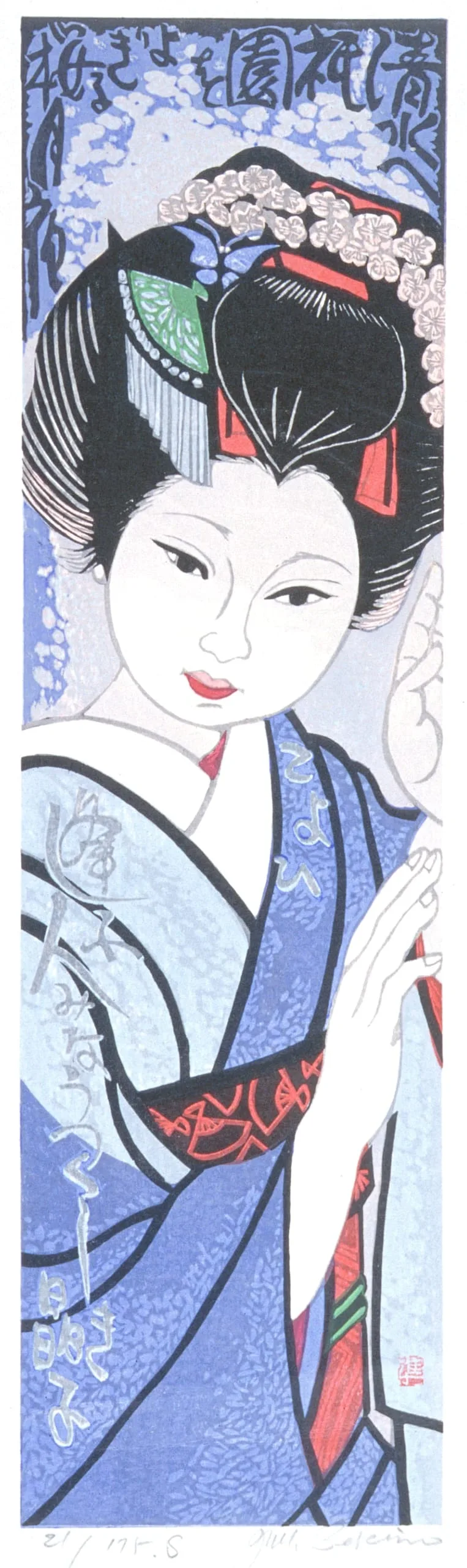 - Maiko Passing Gion towards Kiyomizu on a Night in Cherry Blossom Month
