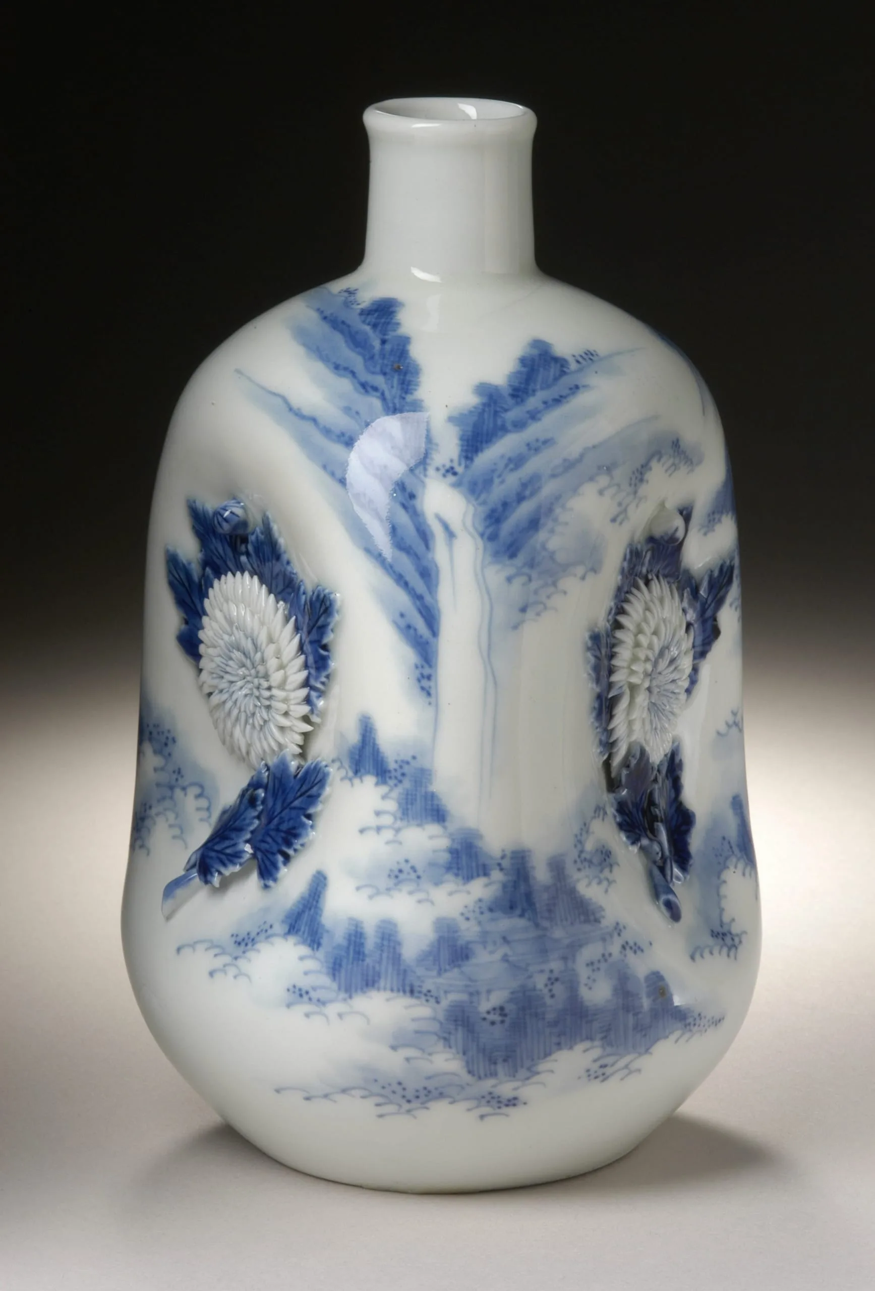 - Sake Bottle with Landscape and Raised Chrysanthemums