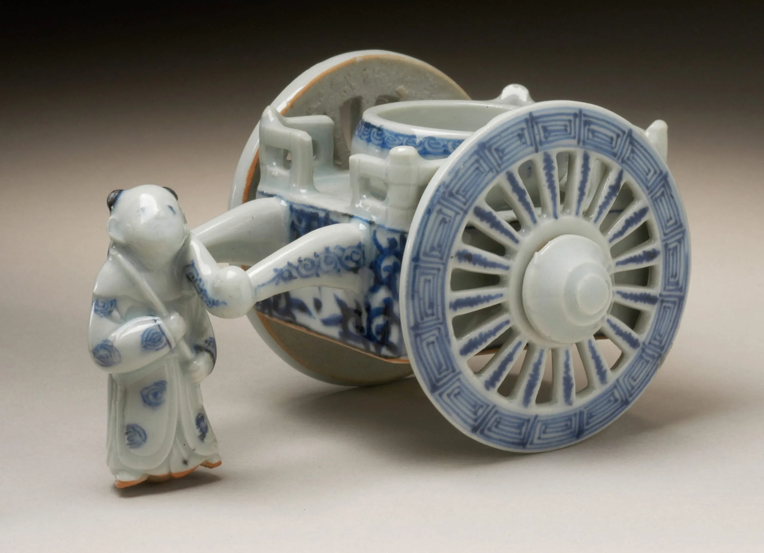 - Sake Cup Holder in the Form of a Chinese Boy Pulling a Cart