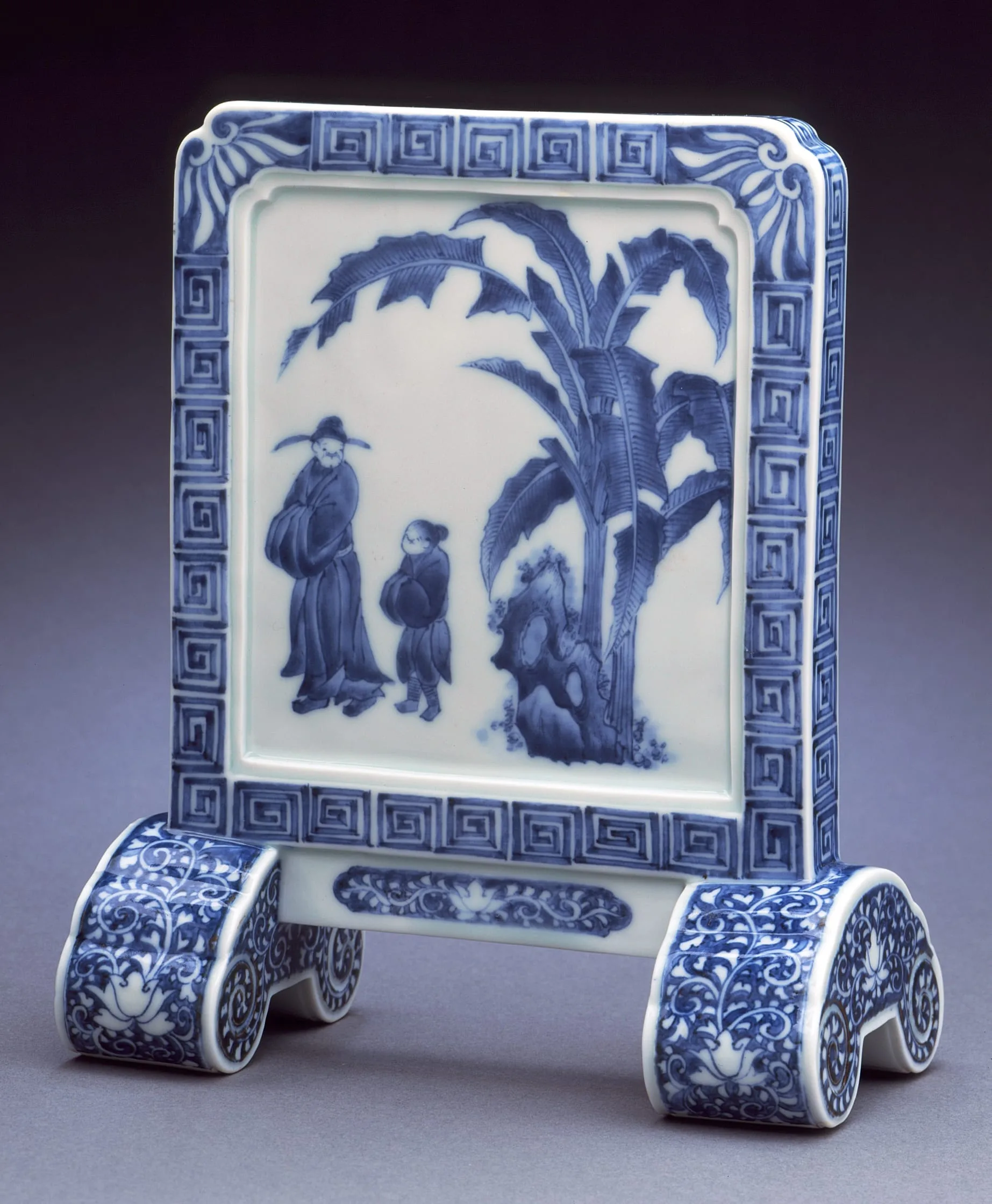 - Desk Screen with Scholar and Attendant under Banana Plant