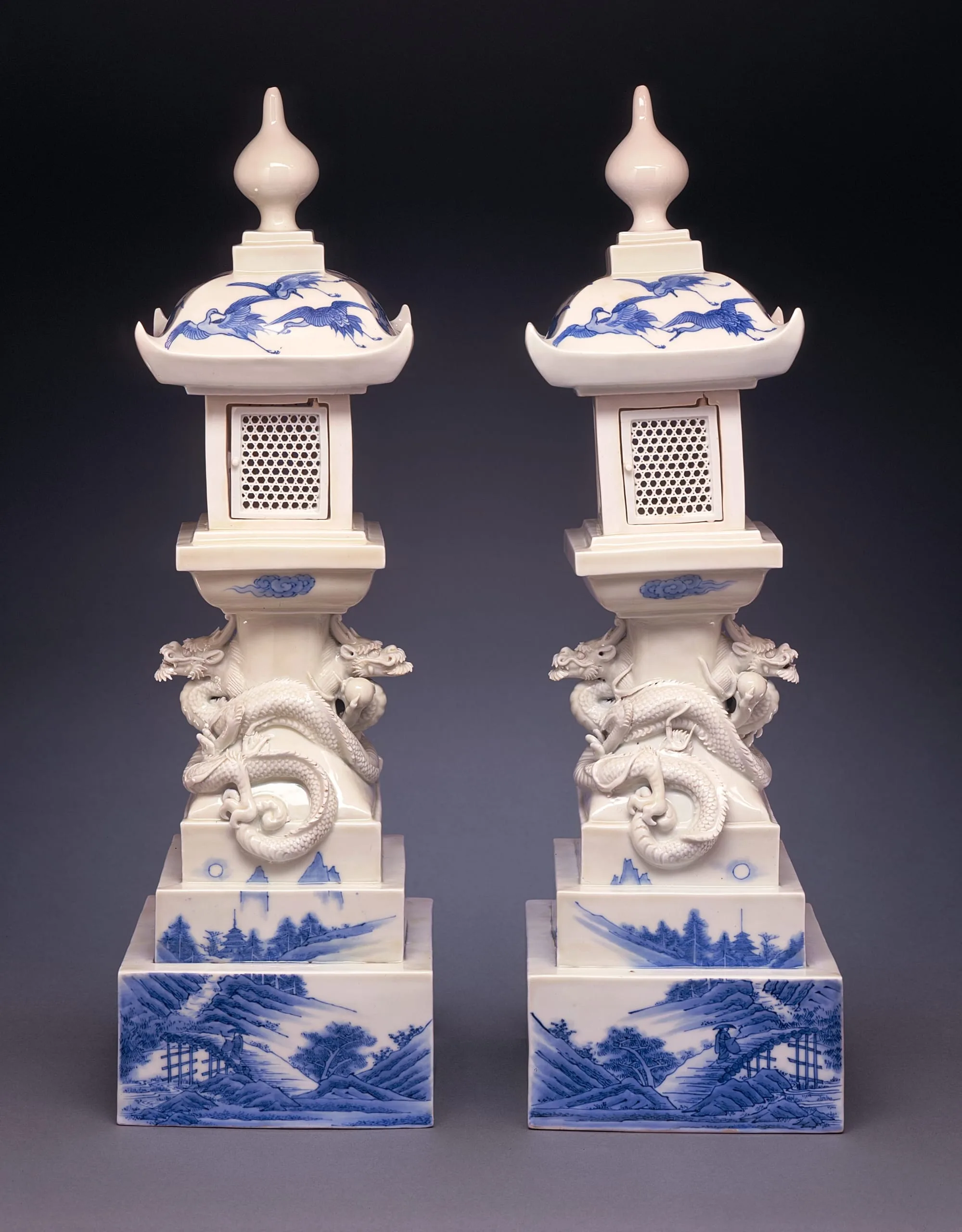 - Pair of Lanterns with Landscapes, Cranes, and Raised Dragons