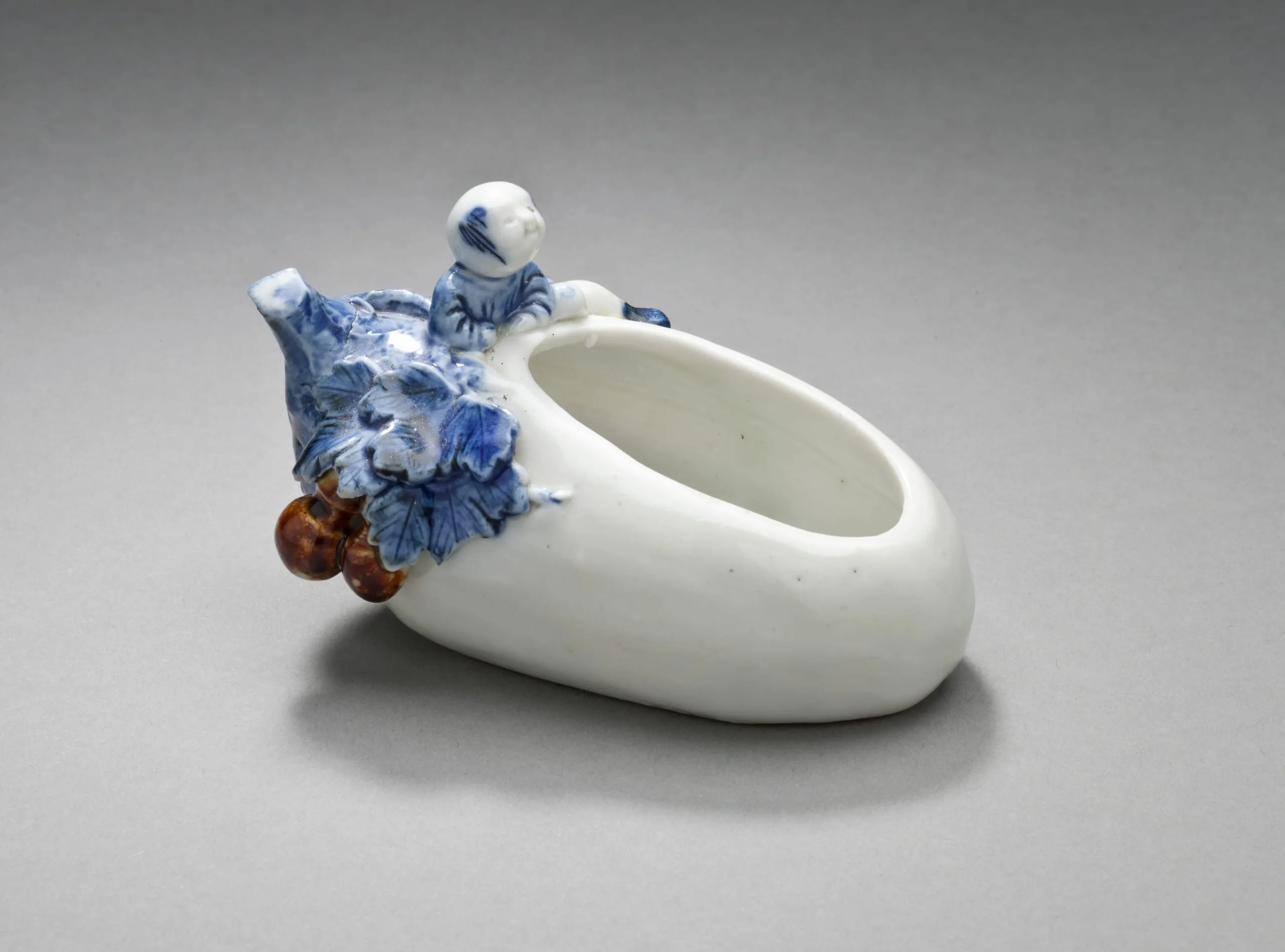 - Bowl or Brush Washer in the Form of an Eggplant with a Chinese Boy Peering In