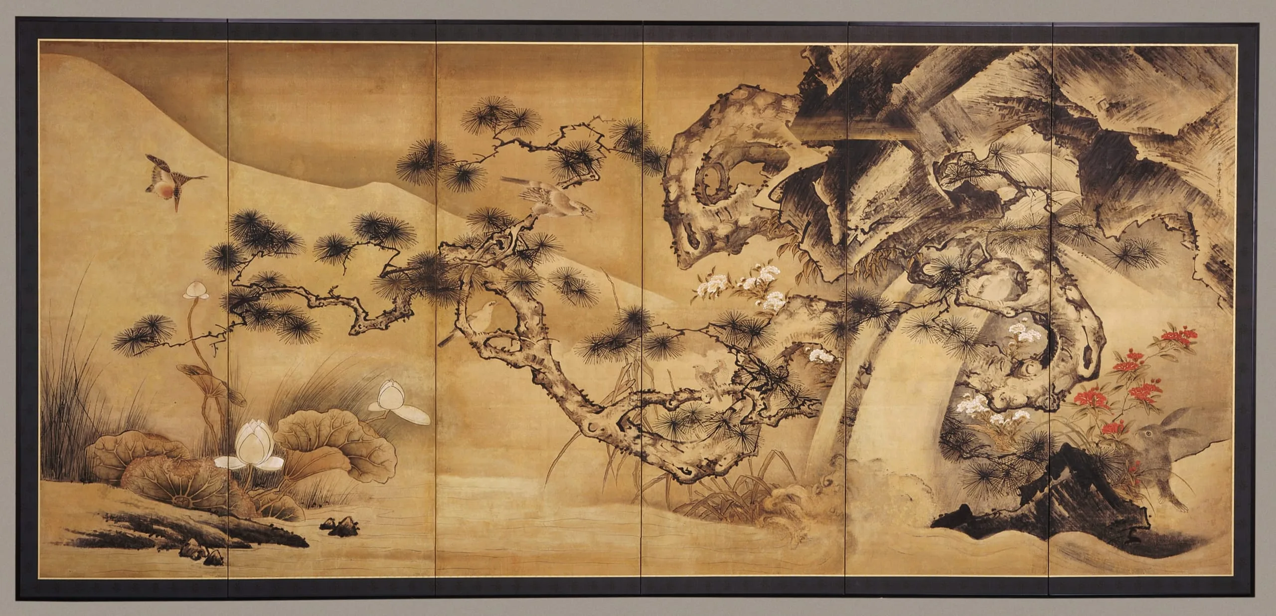 - Six-panel screen; ink and color on paper