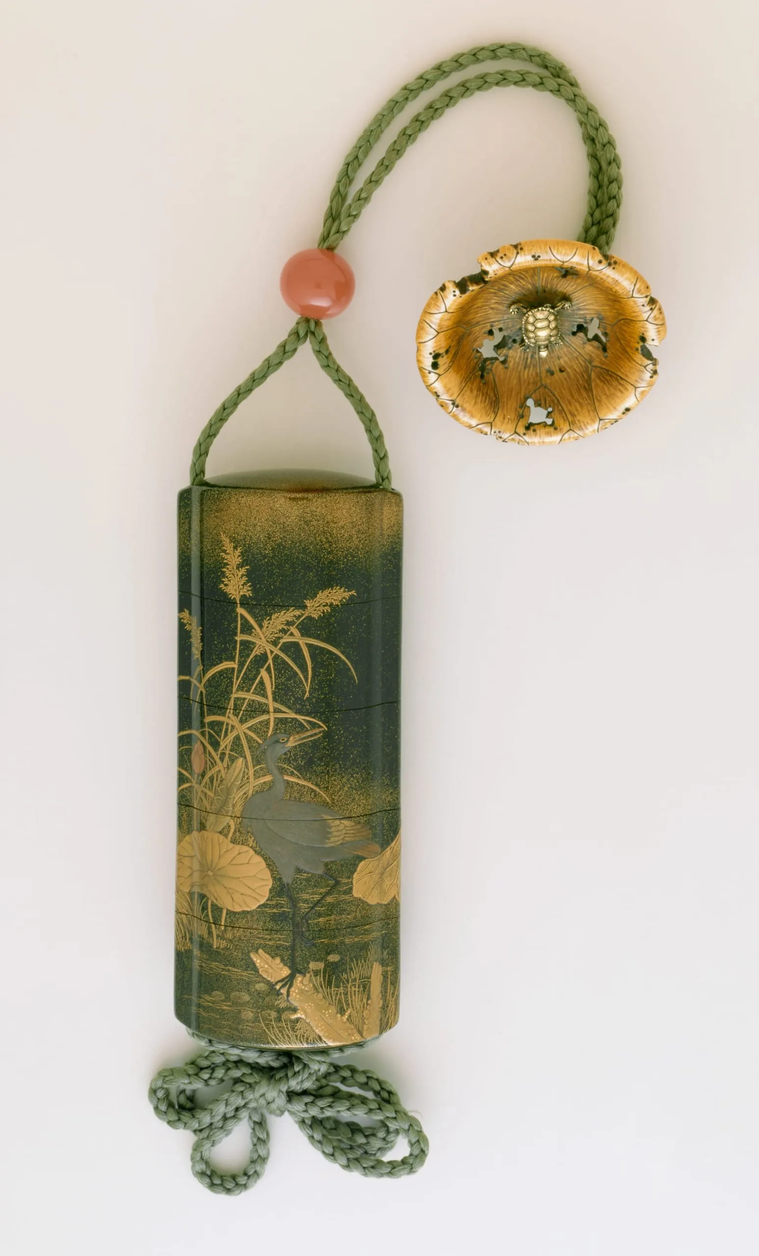 - Egret amid Lotus and Grasses (Inrō/Ojime/Netsuke Ensemble)