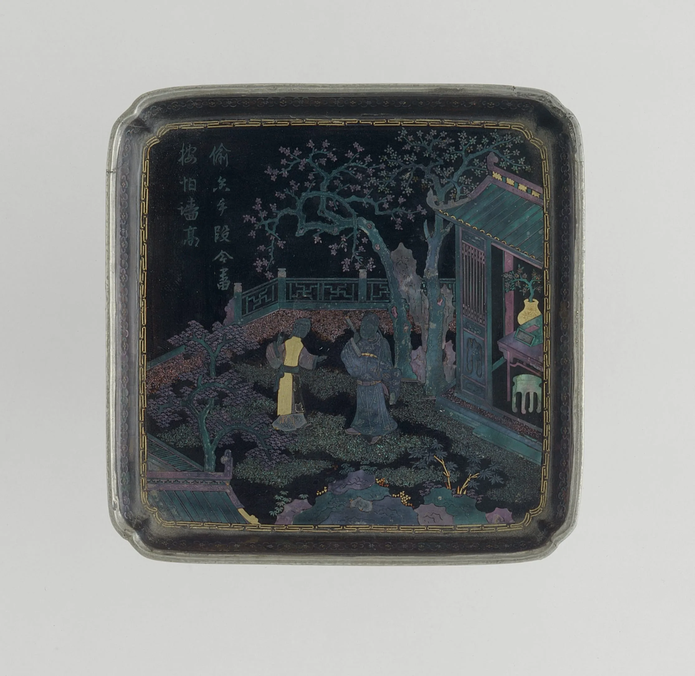 - Square Dish (Die) with Scholar and Maiden in a Garden