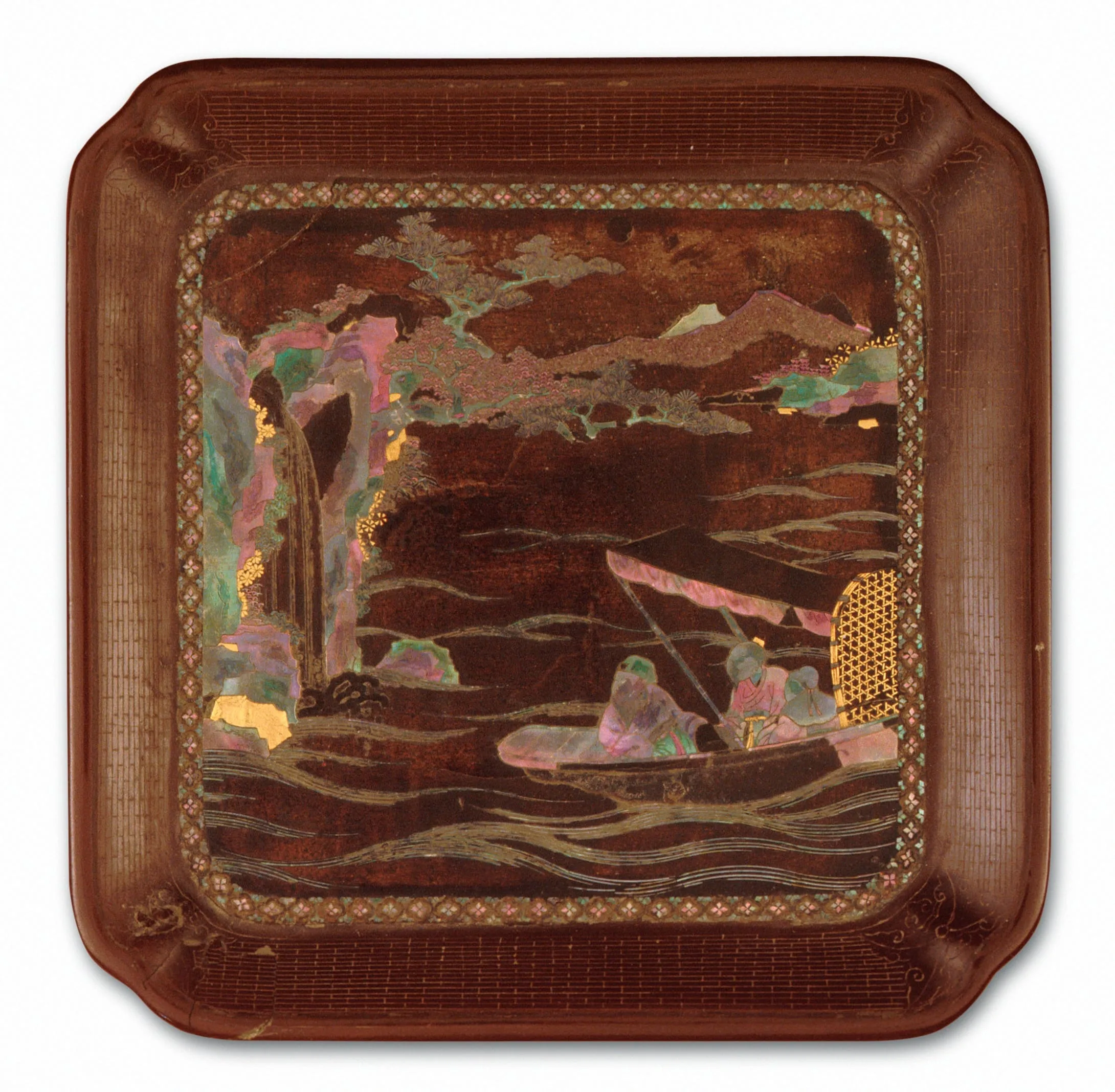 - Square Dish (Die) with Scene of Boating under the Red Cliff (Chi Bi)