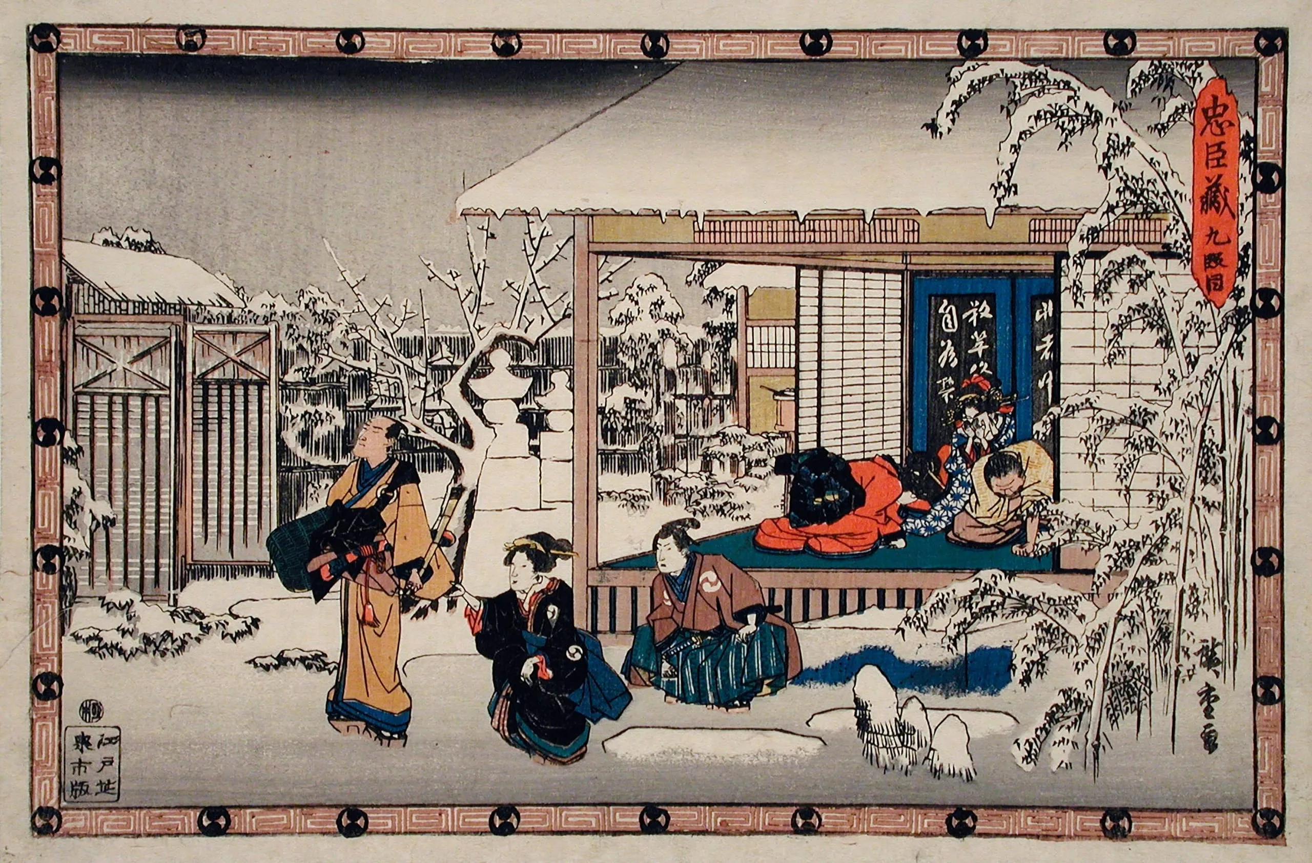 - Act IX: Honzō's Suicide in Front of His Family; Yuranosuke Dressed as a Komusō Making Preparations to Attack Moronao