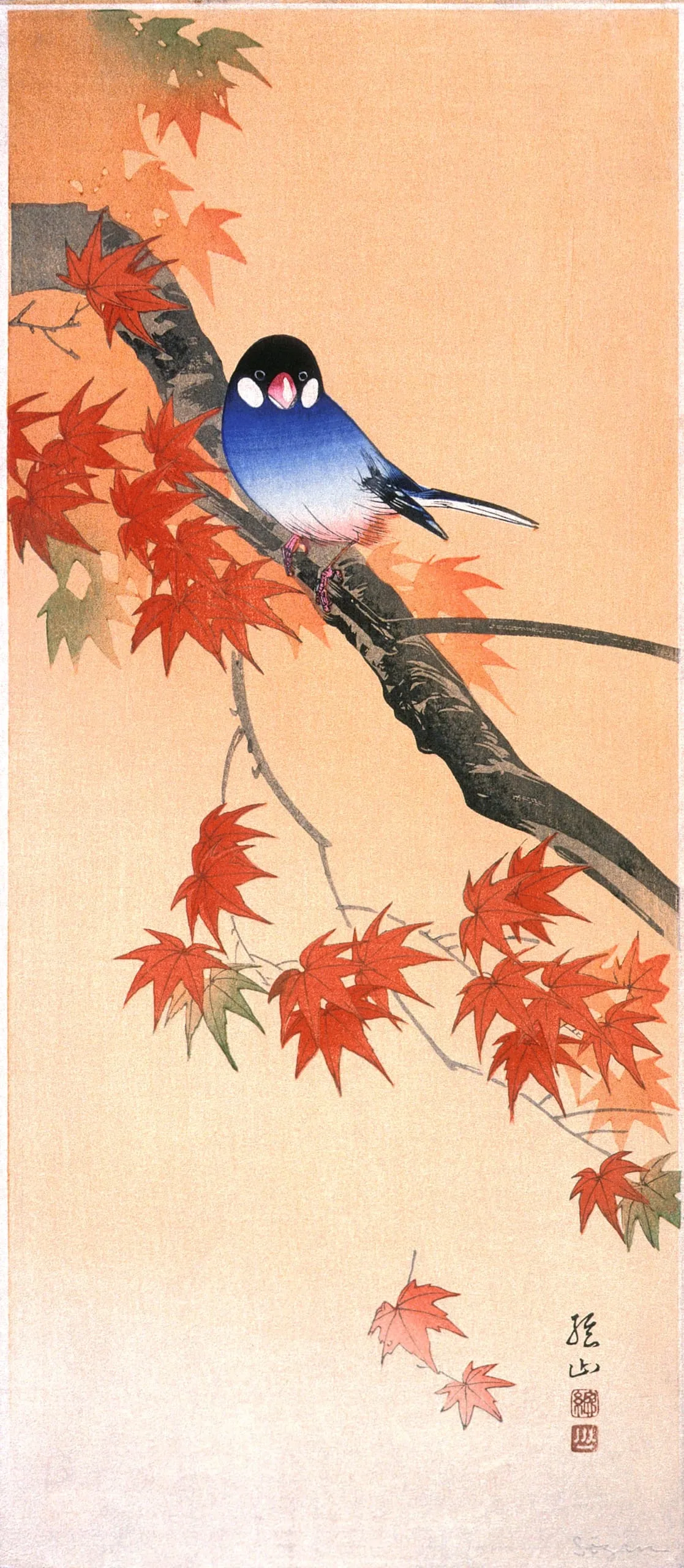 Itō Sōzan, Bluebird on Autumn Maple Branch, circa 1915-1926 | LACMA Collections