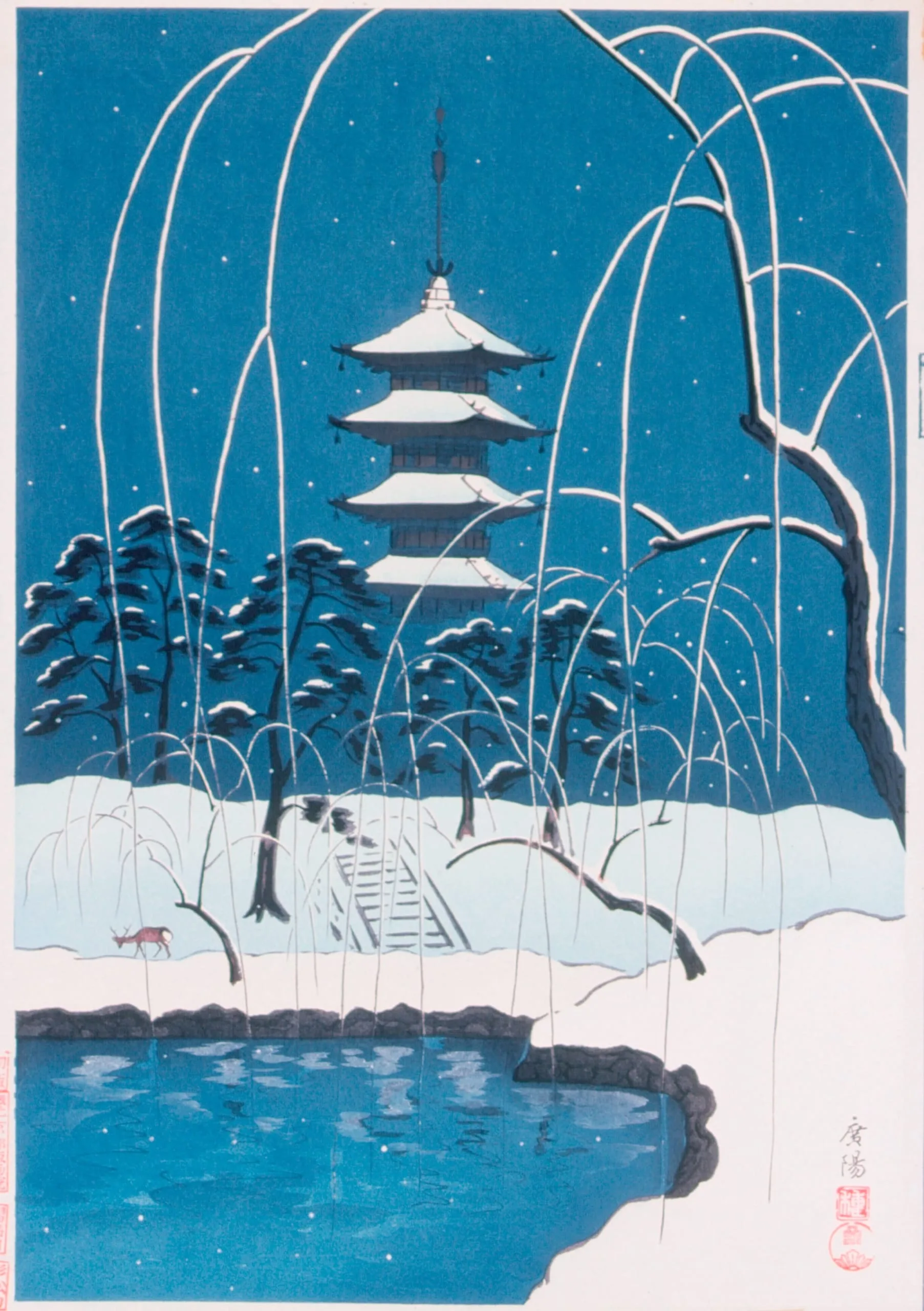 - Pagoda of the Temple Kōfukuji and Sarusawa Ike Pond in Snow