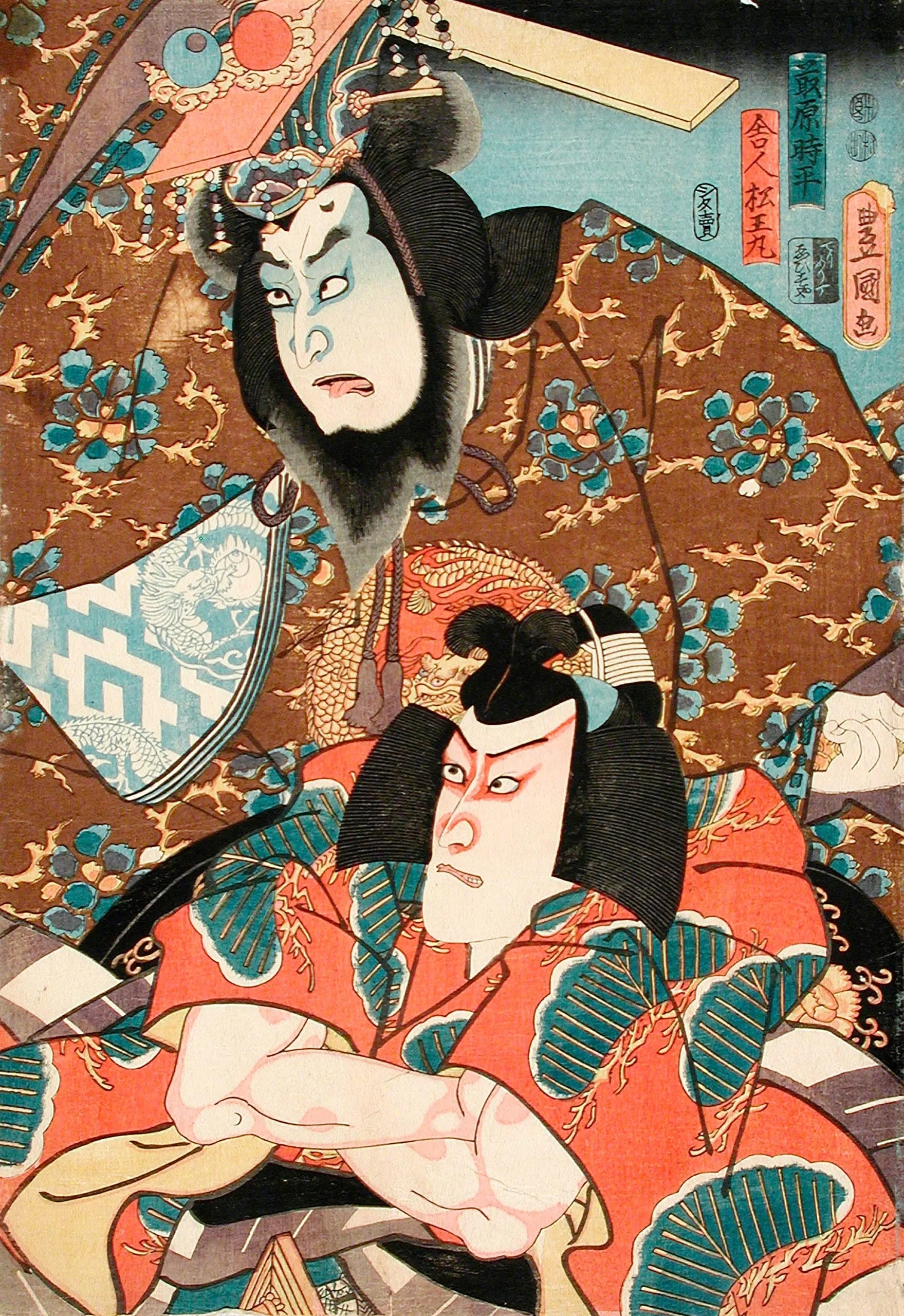 - Fujiwara no Tokihira and Toneri Matsuōmaru from the Play Sugawara Denjū Tenarai Kagami