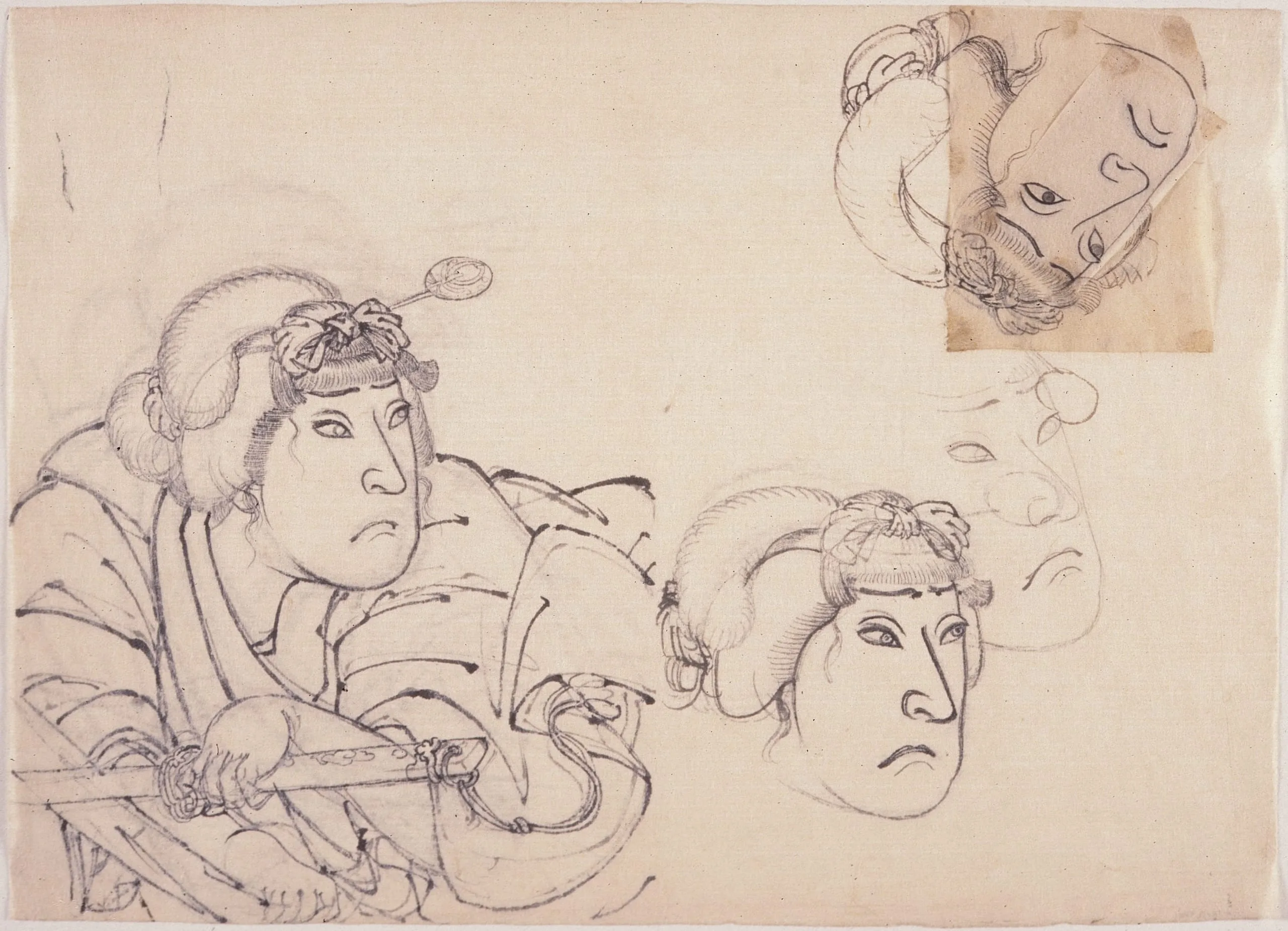- Set of Five Preparatory Drawings for Prints of Actors