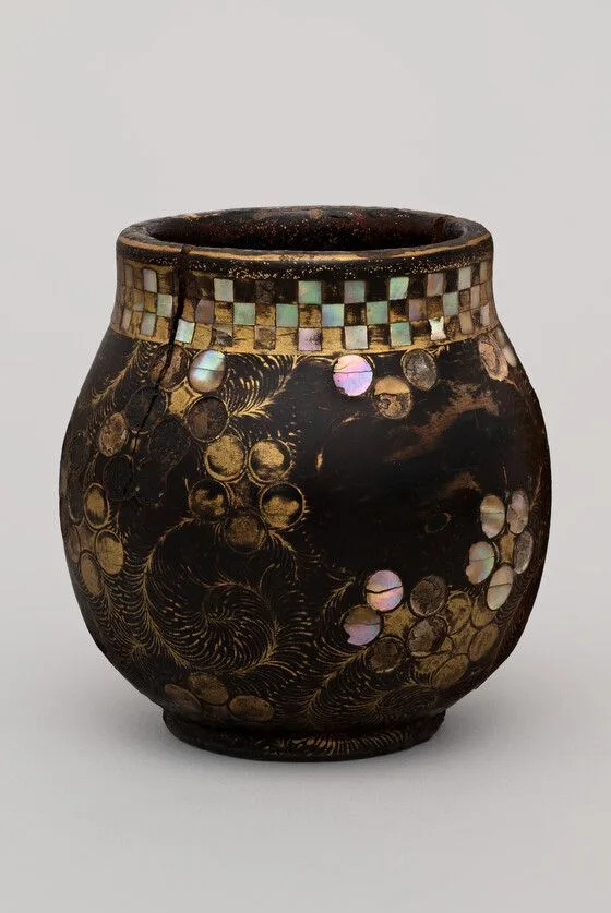 - Black lacquer with makie decoration and mother-of-pearl inlay