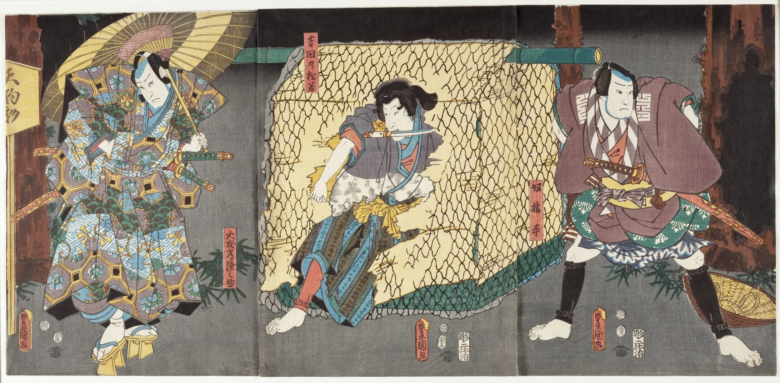 - Actors in the Roles of Yoshida no Matsuwaka, Ōtomo Hitachinosuke, and Yakko Kajihira