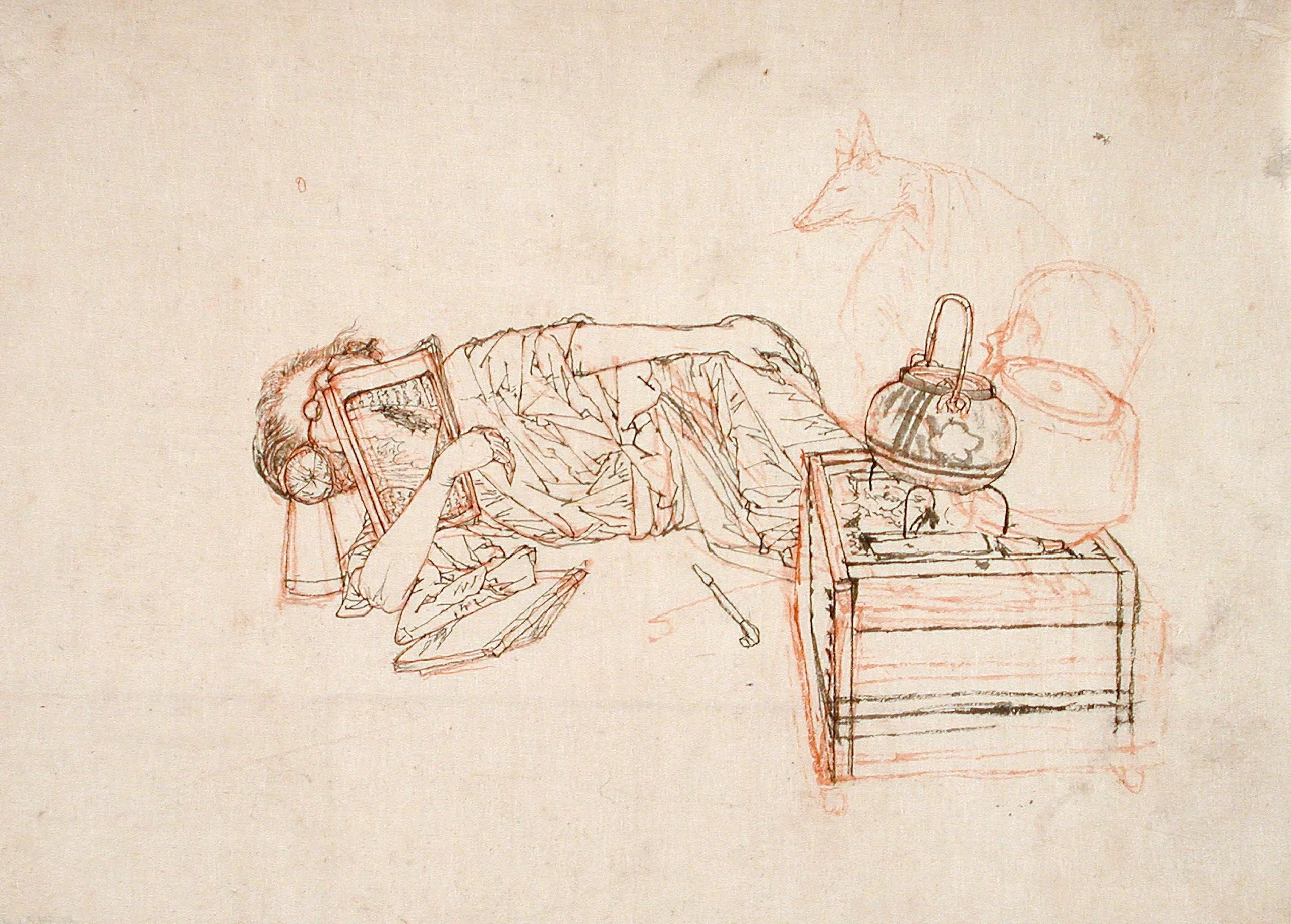 Drawing of a Napping Man