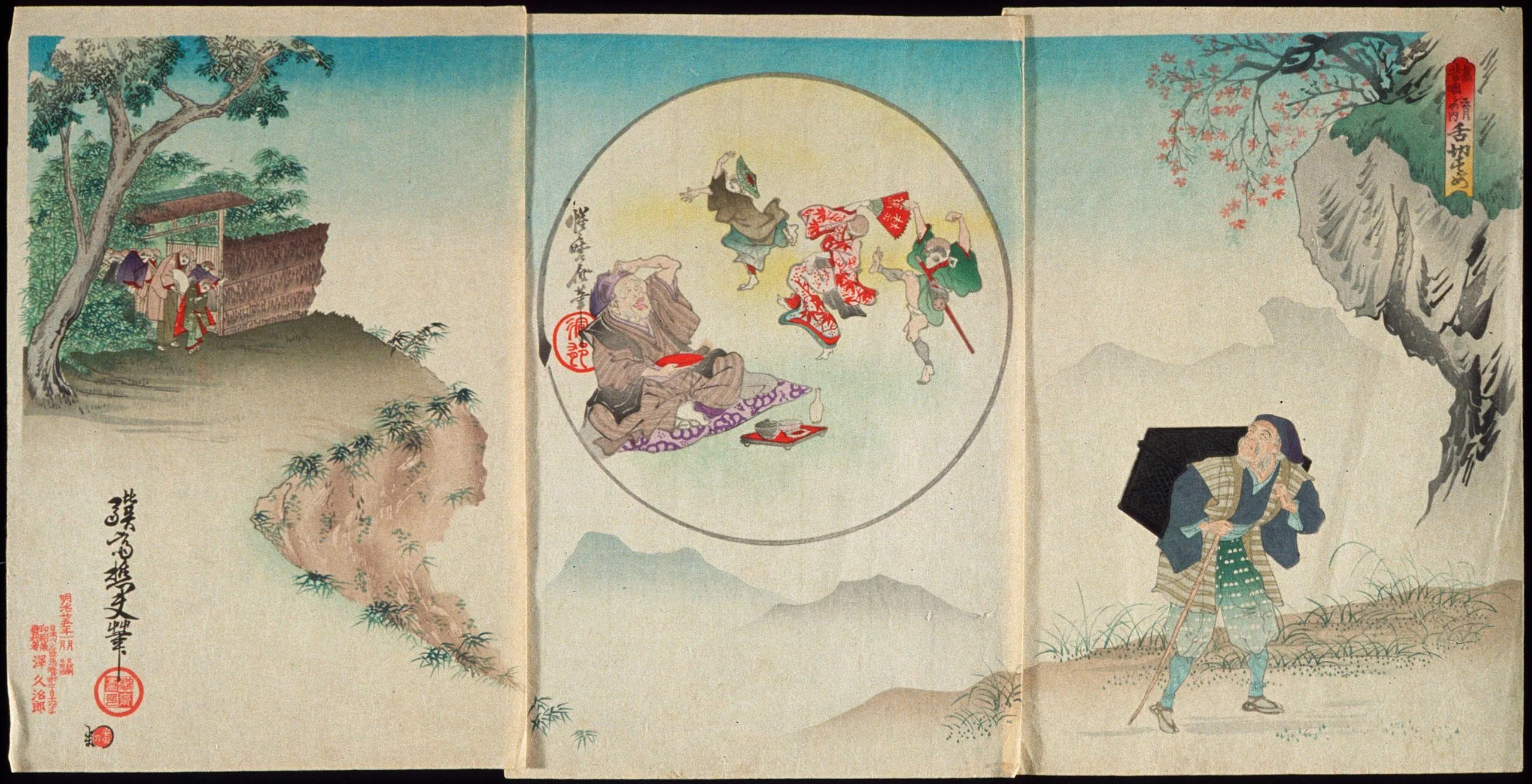 - Triptych; color woodblock print, posthumous edition