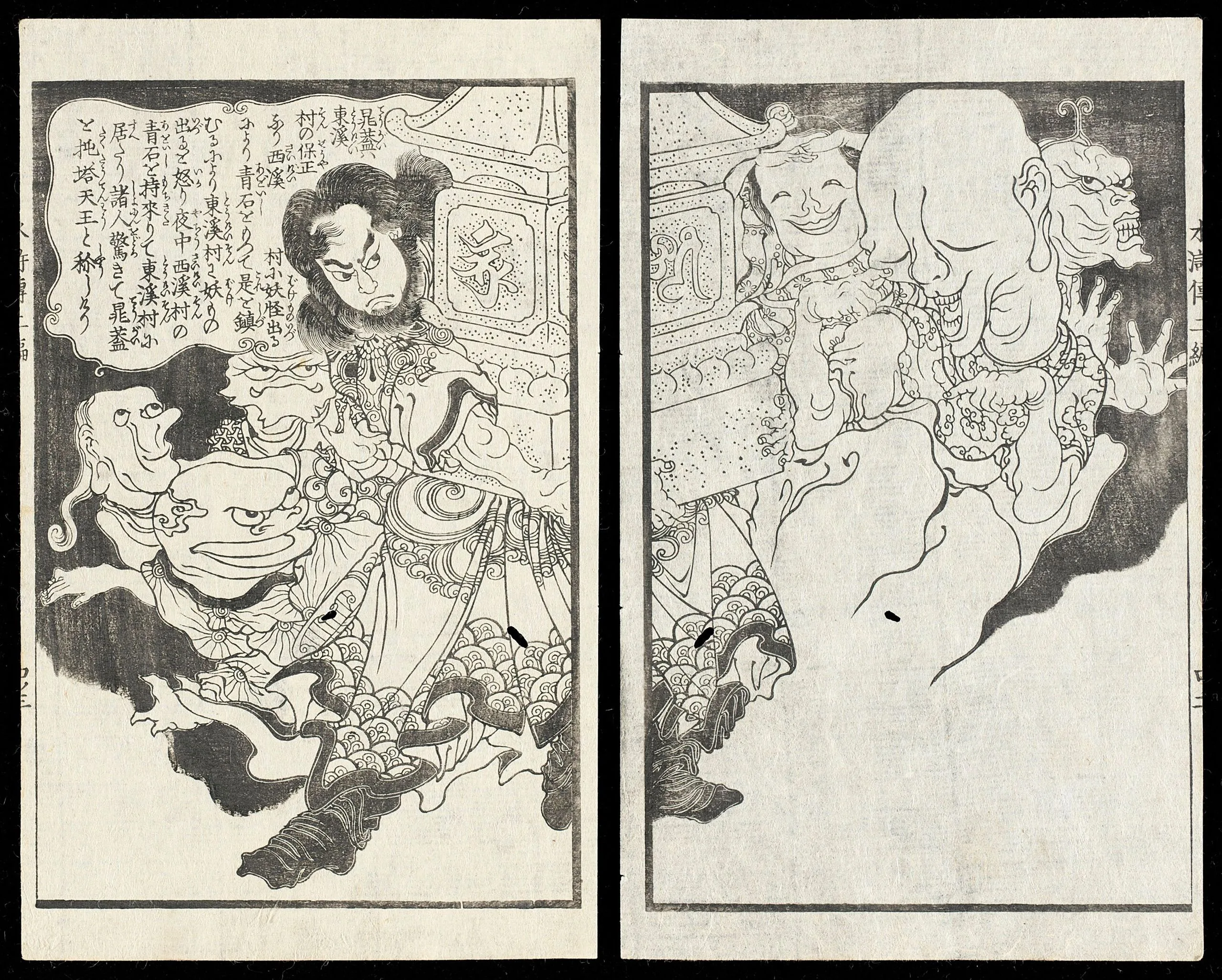 - Two pages from an illustrated book; ink on paper