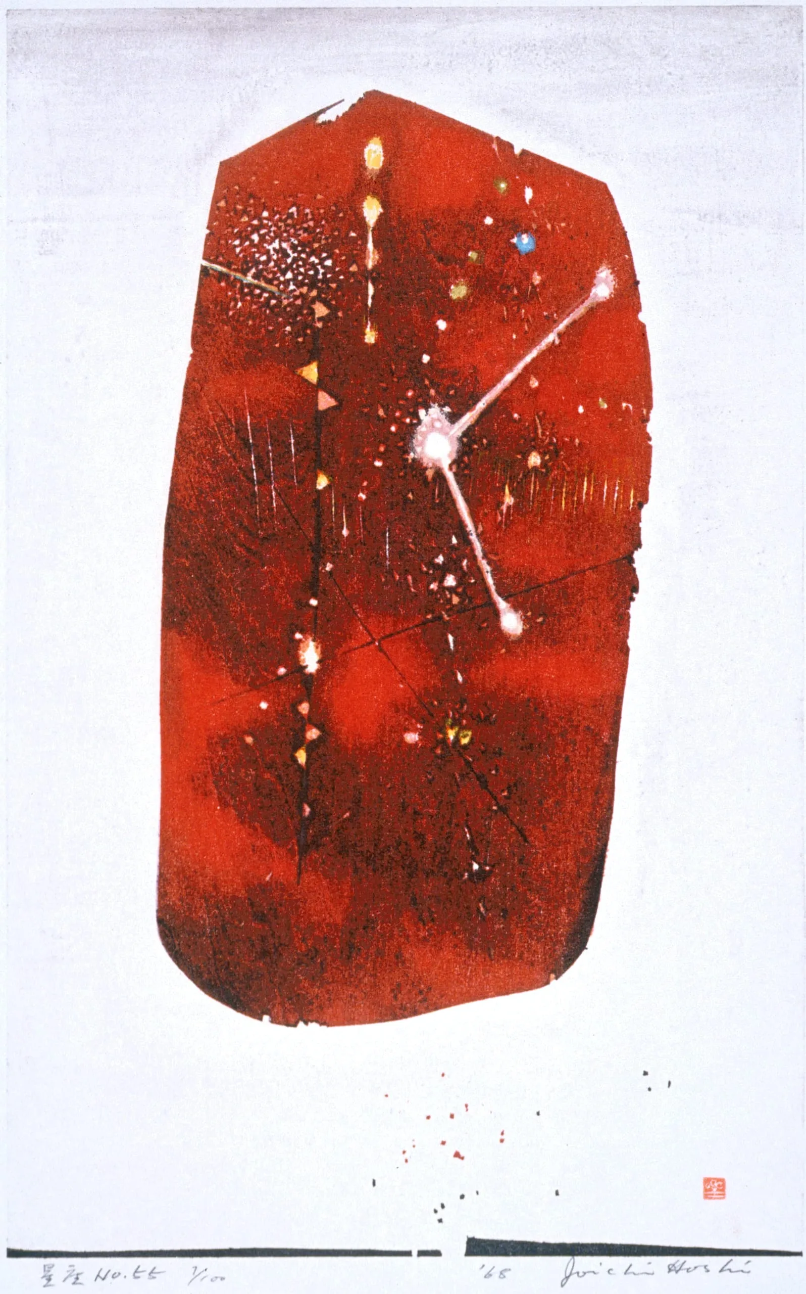 - Color woodblock print from burnt plywood, turpentine-diluted ink and color on torinoko paper