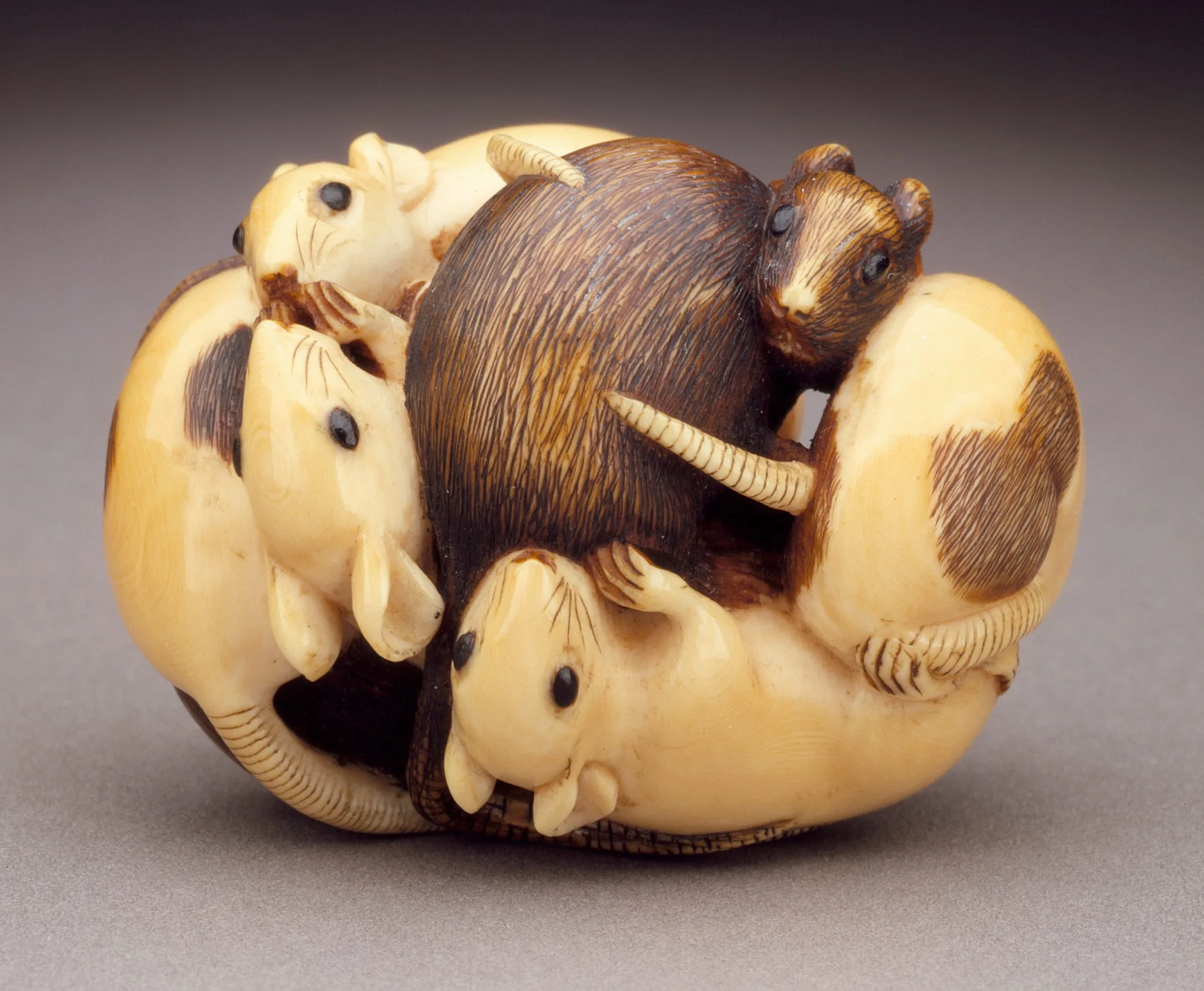- Ivory with staining, sumi, inlays