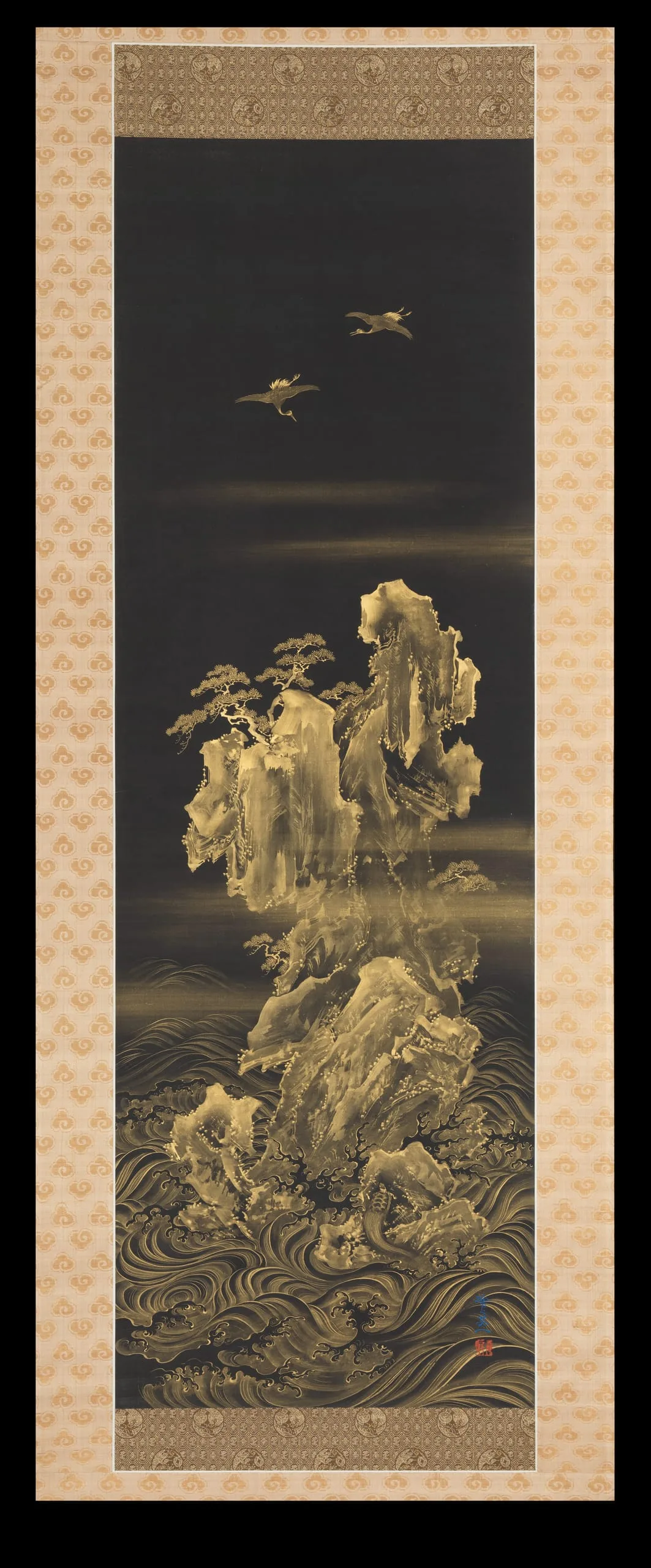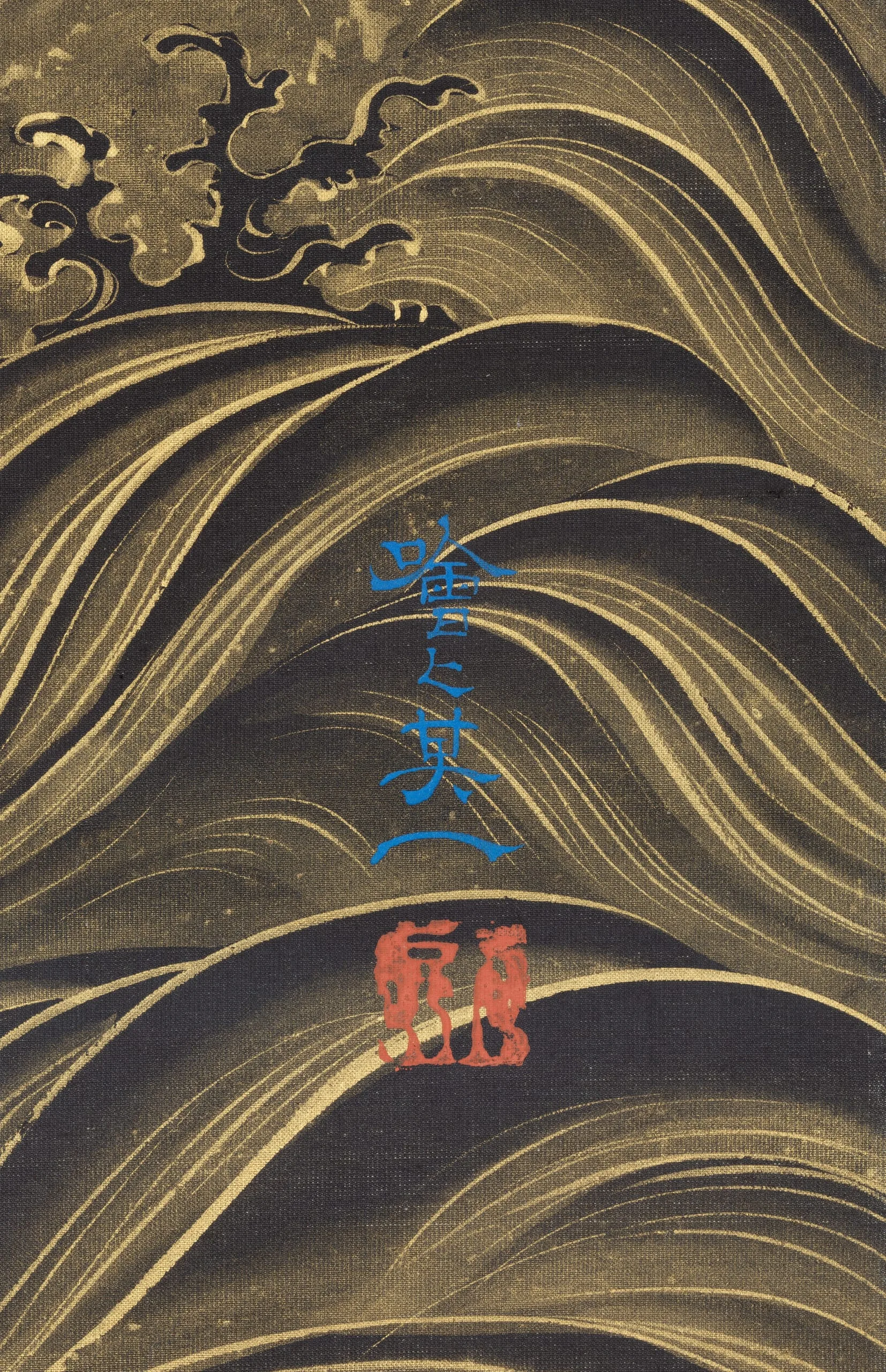 - Hanging scroll; gold on indigo dyed silk