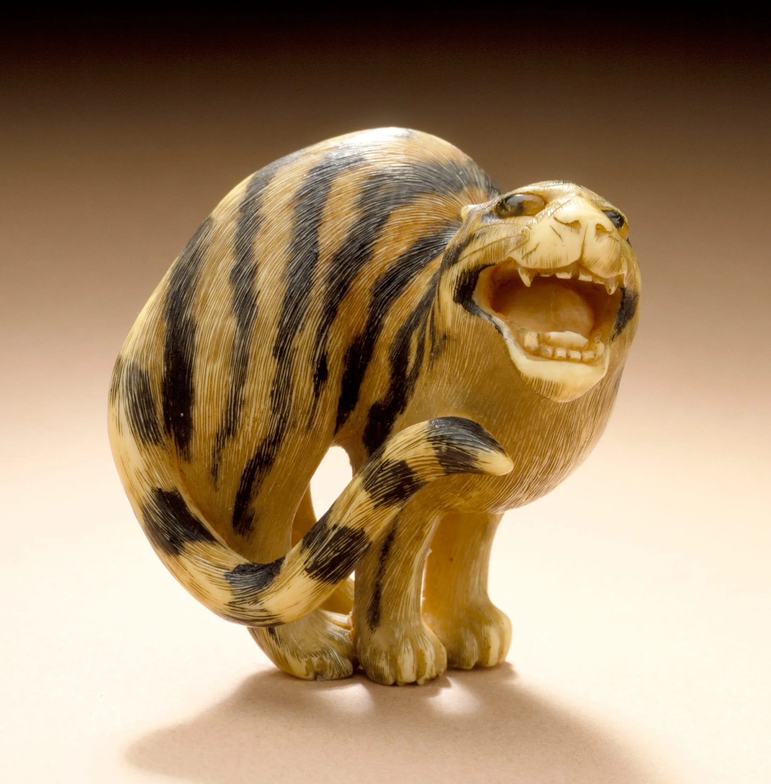 - Ivory with staining, sumi, red pigment, double inlays