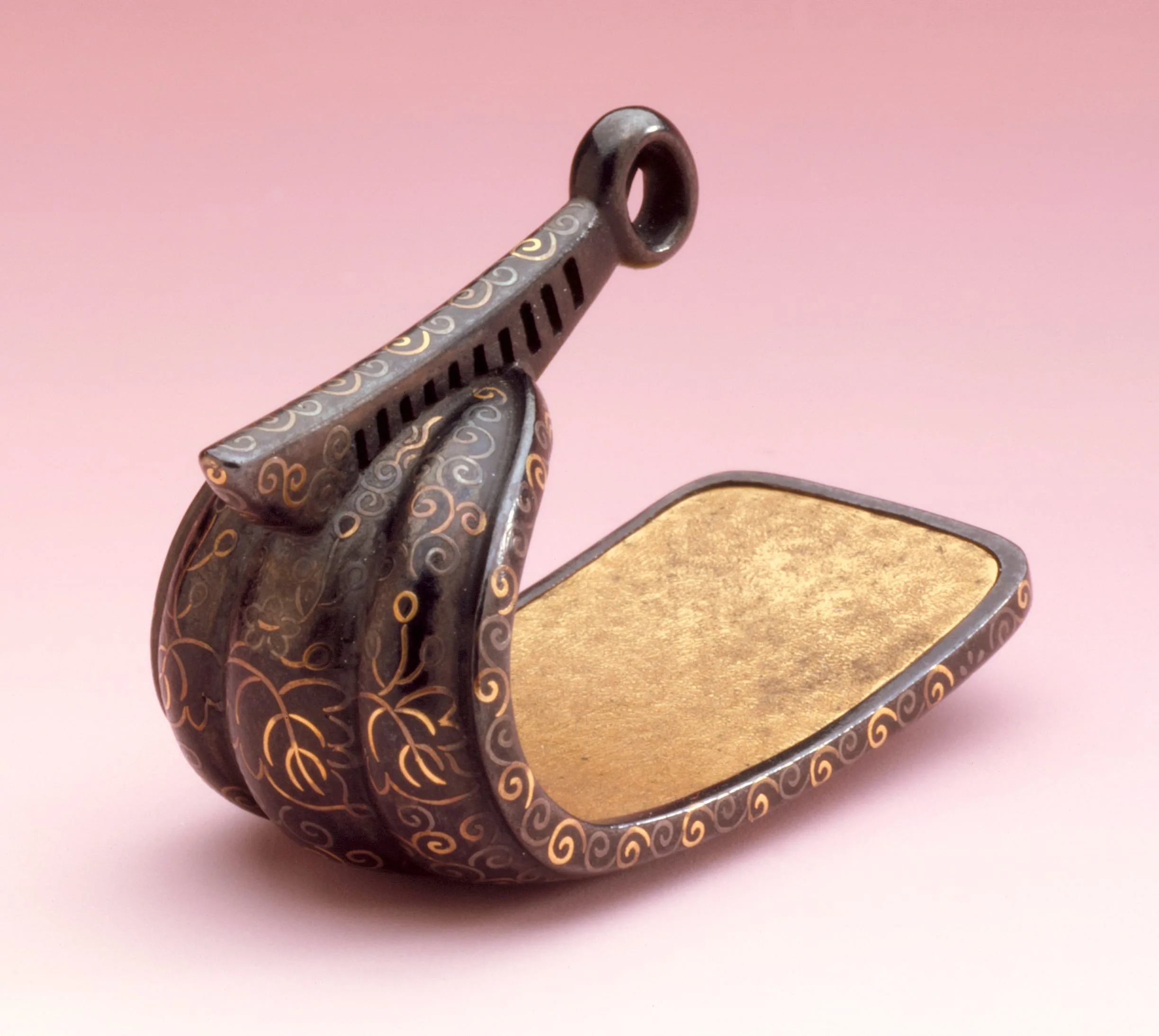 - Gilt bronze with metal inlays and gold stone-ground lining