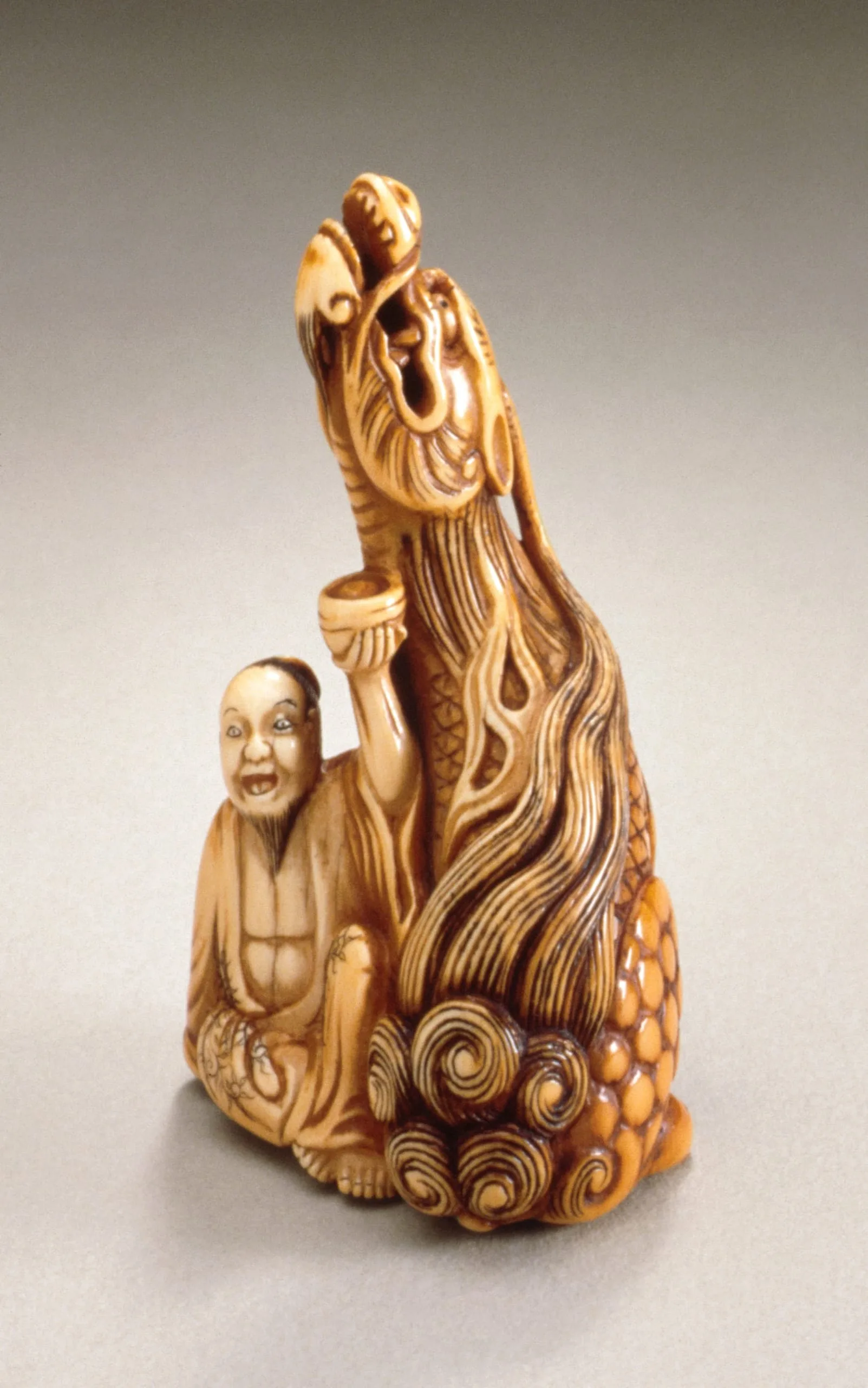 - Ivory with staining, sumi, red pigment