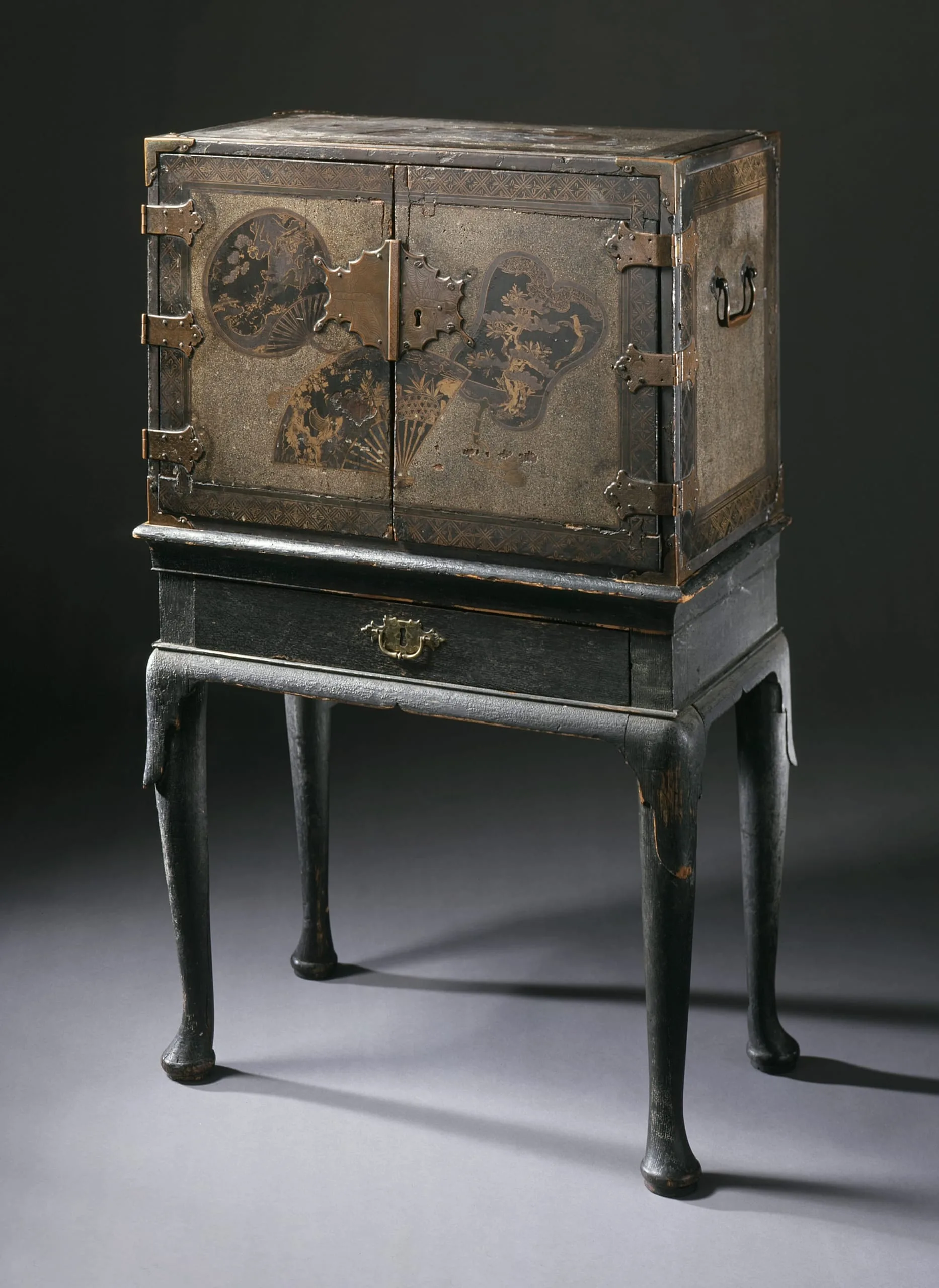 - Black lacquer with maki-e (sprinkled powder design) and mother-of-pearl inlay on rayfish (same) ground