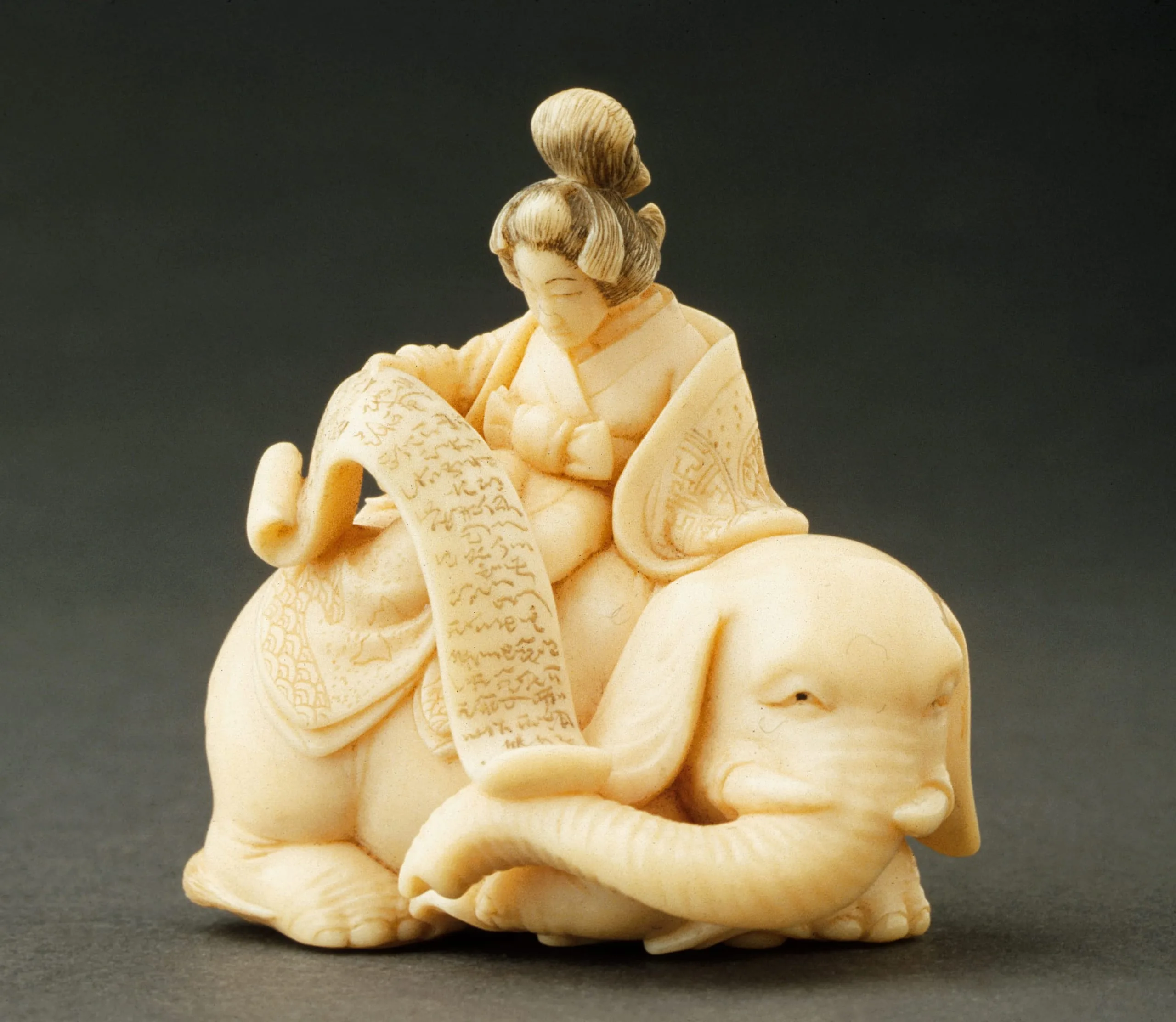 - Ivory with light staining, sumi