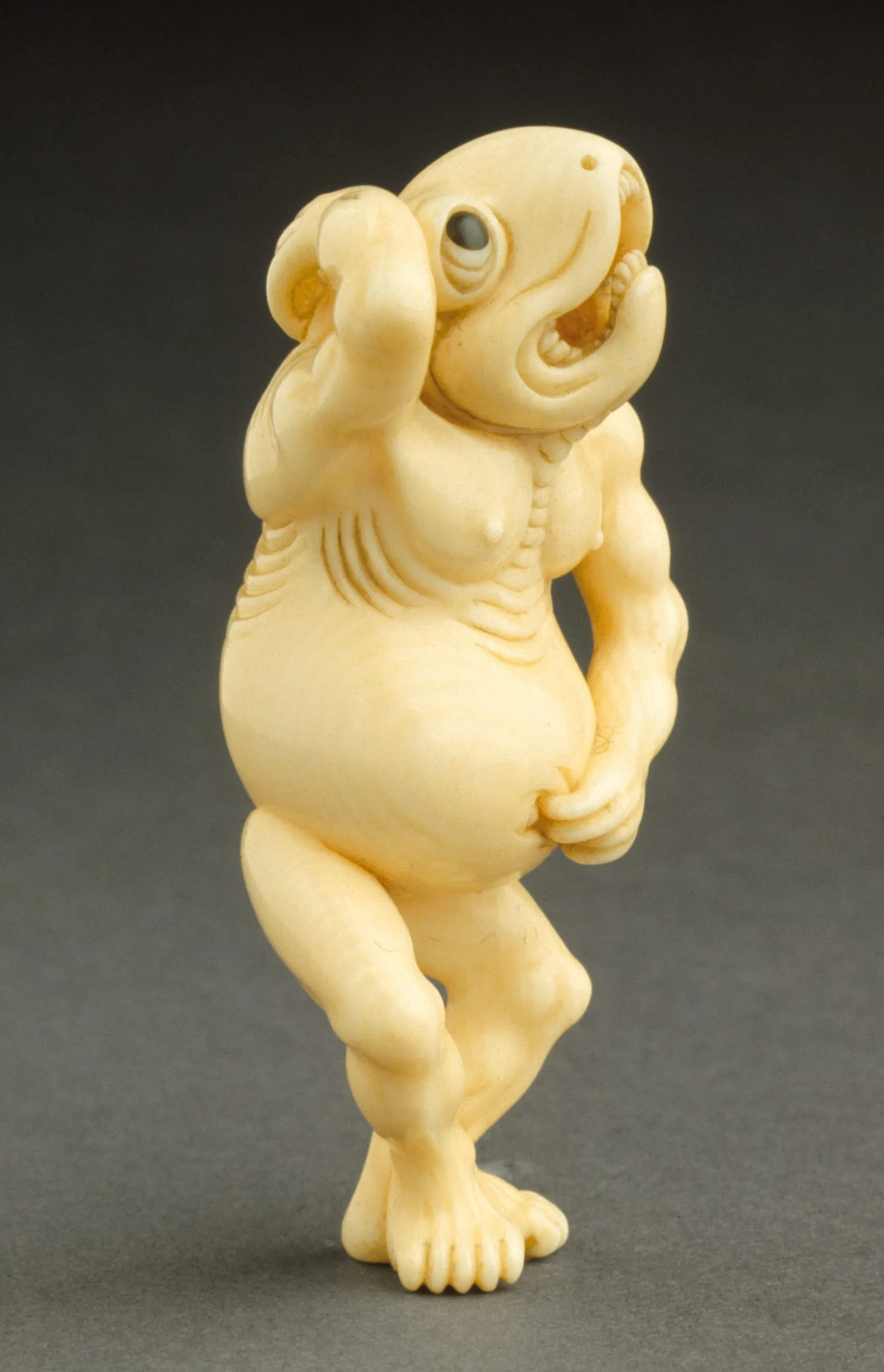 - Ivory with light staining, sumi, black coral inlays