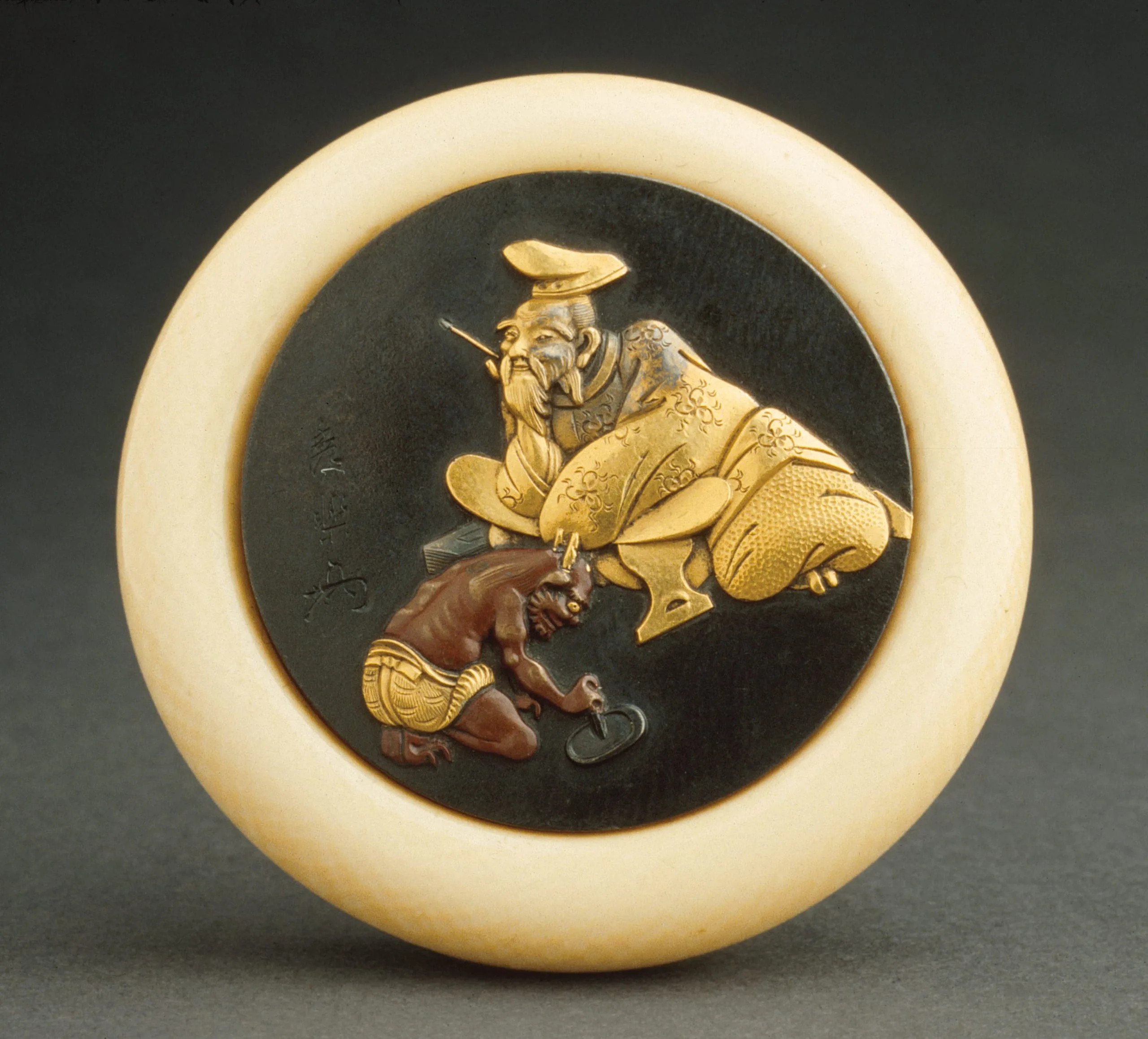 - Mixed-metals disk, ivory bowl; kagamibuta type